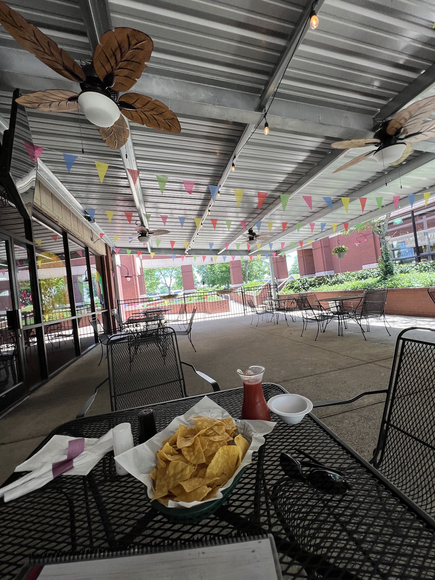 This was our first time trying this place out. The outside patio always looked inviting to me so we asked to sit out there. It’s completely covered and has ceiling fans so it was very pleasant sitting out there even with the humidity being pretty high that day. Every employee we encountered was very friendly and we enjoyed our food. I got the shrimp chimichangas and they were overflowing with shrimp. They were delicious. The only criticism was that smoking was allowed on the patio area and a couple were seated nearby that decided to smoke heavily. Thankfully there was enough breeze blowing away from us but I could potentially see this as a deterrent for us from eating outside. It still didn’t drop my rating of the restaurant but smoke makes me really sick so I need...