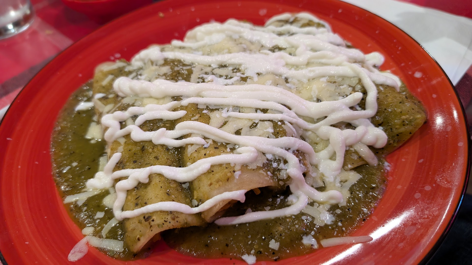 I opted for the chicken fajitas, no tomatoes. The fajitas themselves were delicious. My rice and beans plate came with lettuce, but not the pico and guacamole it was supposed to come with, so I asked for those. I think because I said no tomatoes in my fajitas, he figured that was across the board. Really, I just dislike hot tomatoes. I got a very small amount of pico and guacamole. I asked for more pico and he brought a small salsa dish of pico, but charged me $5 for it! To be fair, I did see pico on the menu for $5, but would have appreciated the heads up that I would be charged for it. $5 is a lot for that quantity of pico.
