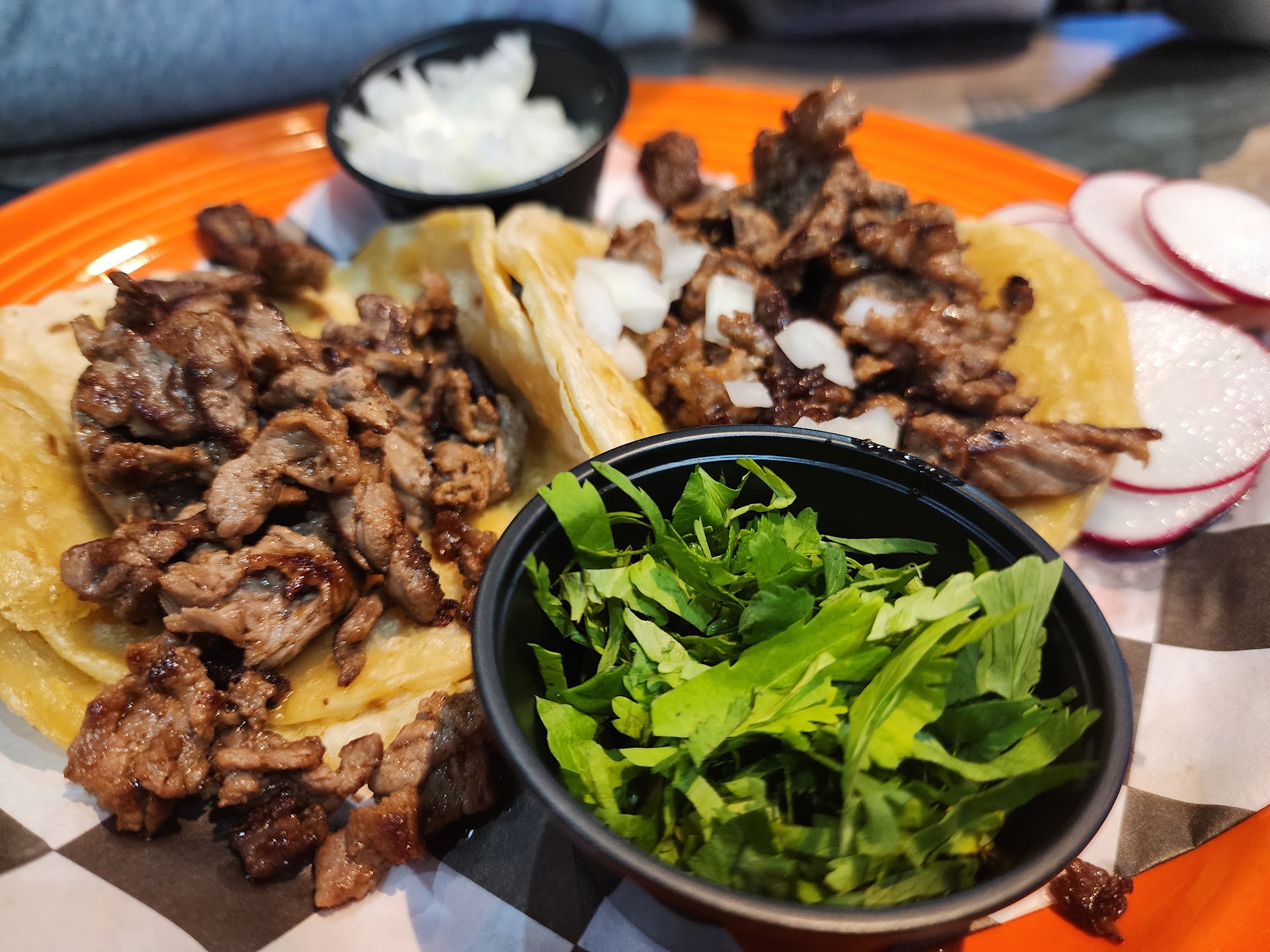 This used to be my favorite place for tacos. I ordered my usual on my last visit. Tacos de birria and tacos autenticos with chicken. I modify by substituting shredded chicken instead of grilled and removing cilantro from everything. On the authentic tacos, that would leave onions and lime as the toppings.
