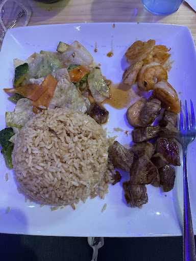 Not great but not bad. The service was relatively slow, but that's to be expected on a Friday night and I didn't let that influence the rating. We opted for dine-in instead of the hibachi side because we thought it would be faster but probably was around the same amount of time. I got hibachi shrimp and my mom got hibachi vegetable. The food was strangely watery. My Mom drained her salad and hibachi plate of excess moisture. You can kind of see in the pic that the sauce is runny. The soup basically tasted like chicken stock, it wasn't bad, but I've had better. My Mom was disappointed in the salad as hers was basically just a bowl of lettuce with the sauce. Mine had a tiny amount of shredded carrots but was also mostly lettuce. The hibachi didn't really seem like it was grilled or anything, it felt like they just slapped teriyaki sauce on it and called it hibachi. Also all the vegetables were very bland, it didn't taste like much seasoning was used at all. Now I'm a fan of the yum yum sauce, so that was good and covered up the blandness, but in my experience at other places, hibachi food is usually seasoned well enough to not need sauce. I was offered spicy rice, which was a nice difference, though. I also got the Japanese soda to drink which I've had before from other places, the way it was written on the menu I thought maybe they had it on tap, but it turned out to be in a bottle and it didn't have free refills which wasn't listed on the menu either. Since I'd had that before, I would've opted for tea or something else, if I'd realized it was in a bottle and didn't come with refills. But it can be a nice novelty to try, if you've never tried it. And the waiter was great about bringing water without me even having to ask for when I finished it. For dessert we got the volcano brownie. While delicious, it didn't feel accurately named. I was expecting maybe some molten fudge or something but it was just a small brownie piled with vanilla ice cream and whipped cream. The portion sizes are large as most hibachi places are, so it's a nice amount for the price. It is very expensive though, which I wouldn't have thought was a problem had I been more impressed with the food. I don't plan on returning but I wouldn't necessarily say don't try it. I do recommend going for the hibachi show instead of dine-in, though. I'm sure the food is probably the same quality, but at least the entertainment of watching them cook could...