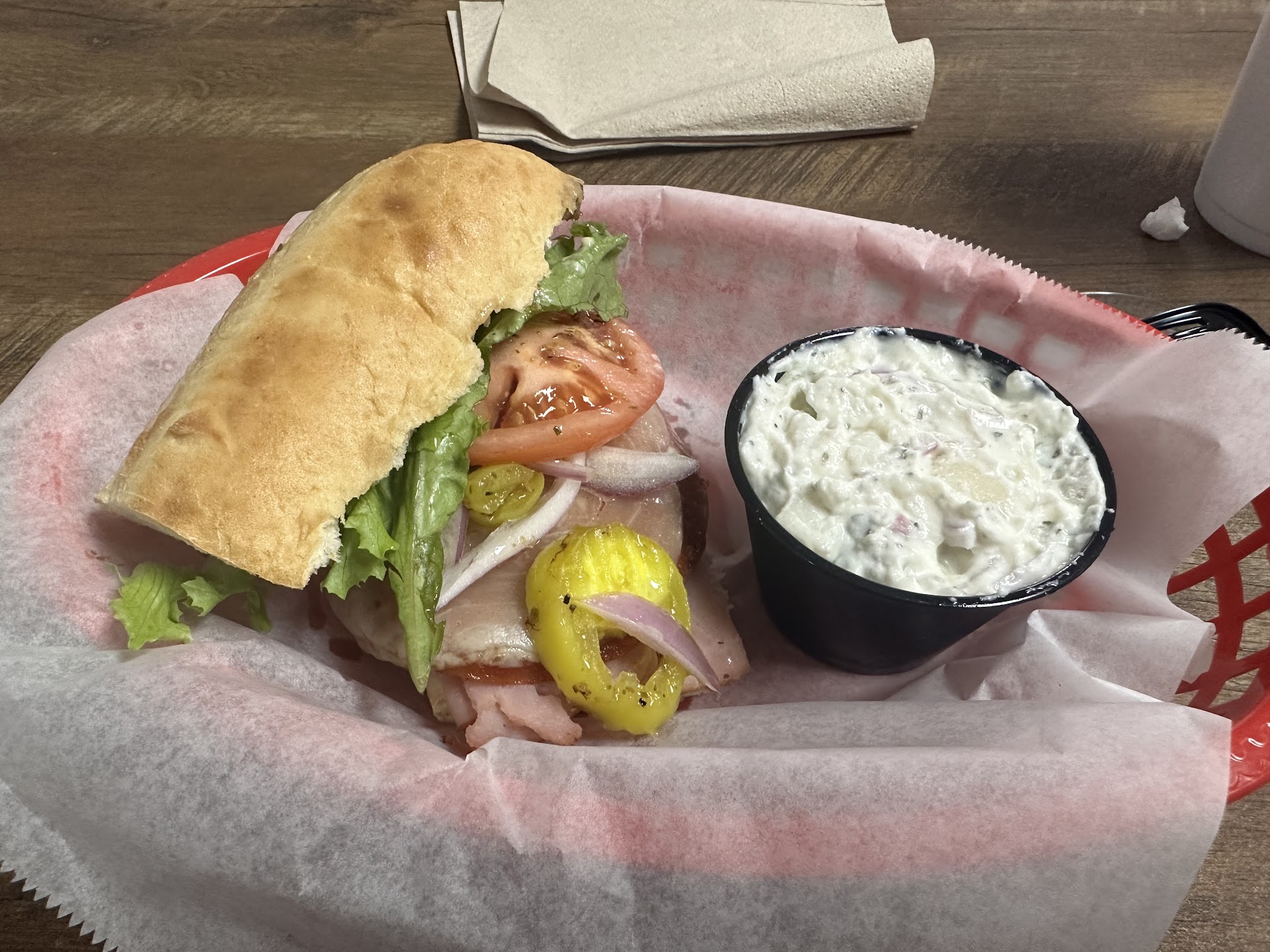 The Italian sandwich was a harmony of flavors, with just the right amount of seasoning that elevated its taste profile. The potato salad was a delightful side dish, providing a satisfying, creamy texture alongside our sandwiches.