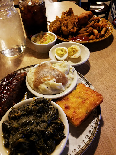 I had the meatloaf, greens, mashed potatoes and gravy, and Mexican cornbread. The wife had the catfish, fries, coleslaw, and deviled eggs.