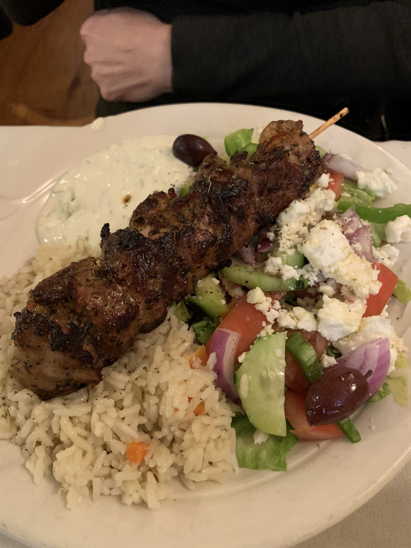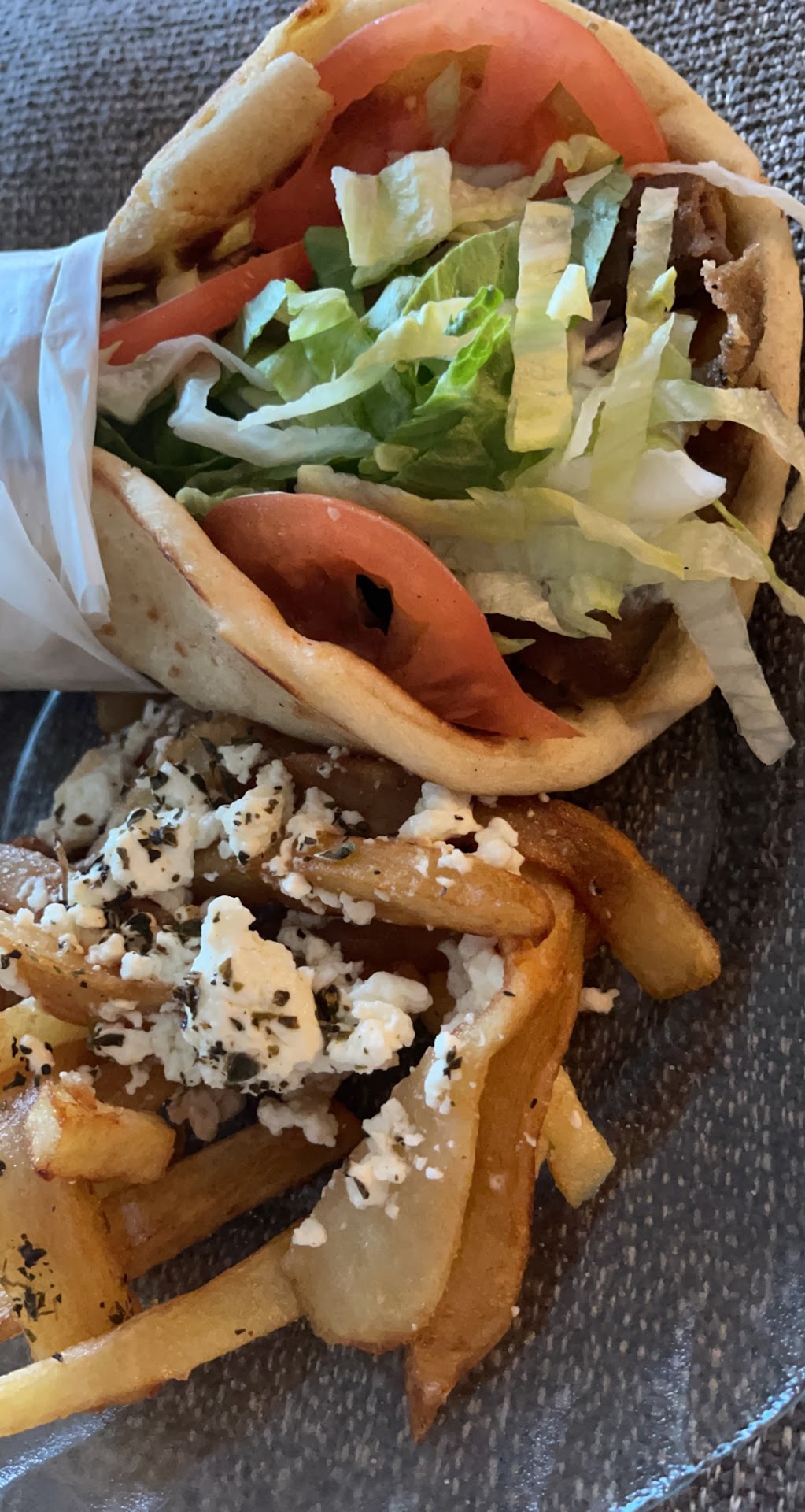 Read moreMy family has ordered takeout from this establishment for many years. I can fondly remember the hot pita bread and tasty salad. However tonight, we decided to eat in. We got inside and discovered there was nobody really around, just us. Okay. Quiet but fine. We were seated, then the waiter asked us what we wanted to drink. When my aunt asked for tap water (since she knew about their odd water bottle preference) the waiter just said over and over "it's store policy, only bottled water." Okay. Weird. So I just grit my teeth and had a bottled water. But then I asked for a gyro. I had ordered it in store before. Our server then says "gyro is takeout only. Store policy." Huh? What? I asked him why, because I was curious... Were they unable to sell gyro meat after lunch? The server just repeatedly said "it's store policy" again, before the lady in the kitchen started yelling at him in Greek. It was all very, very awkward and I just wanted to know what was going on- I was totally okay with ordering a different entree, but really, why continue to say "store policy" and not give a reason? Further more... it says gyro meat is available for additional cost for the salads on their dinner menu. Something isn't right about this but okay. Thankfully the food was good. But service was not. The waiter never really checked up on us. When it came time to package our meals and get the check, he set down the containers and started walking away like he had to run for the hills, all while my poor mother tried to ask him for a smaller container! A gratuity charge was put on the bill, and I didn't see any note about party size factoring that charge anywhere on the menu, so I could have missed something. But we were a group of 5... isn't the charge for 6+? All in all, it really seemed like the waiter was desperate for us to leave. I spotted what seemed to be the owner sitting in the front of the house, BLARING TikToks while waiting for us to leave. Really, dude? Either way the food was good, but we're not coming back to dine in. If you're gonna run a business-- you can't rely on ONLY your food to get you through. You have to actually train your employees to smile, to be accommodating. And based on other reviews, clearly this is falling on deaf ears since the server is a repeat offender. Just focus on takeout,...