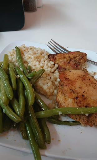 It's buffet style food, and the food selection seems a bit healthier than what's offered in the main cafeteria, if you're used to eating chick filet or pizza everyday then the lack of MSG in the N-wing food court would be difficult to adjust to. I had Italian herb roasted chicken (they used boneless thighs which is the best cut for roasting) spicy sautéed green beans (which weren't very spicy but still well seasoned despite being slightly under cooked) and lemon and butter cous cous. Chicken was tasty, albeit a little dry but that's expected seeing as it has to sit under a heat lamp, cous cous was good too, not mushy like you'd normally get at alot of crappier restaurants in the area.