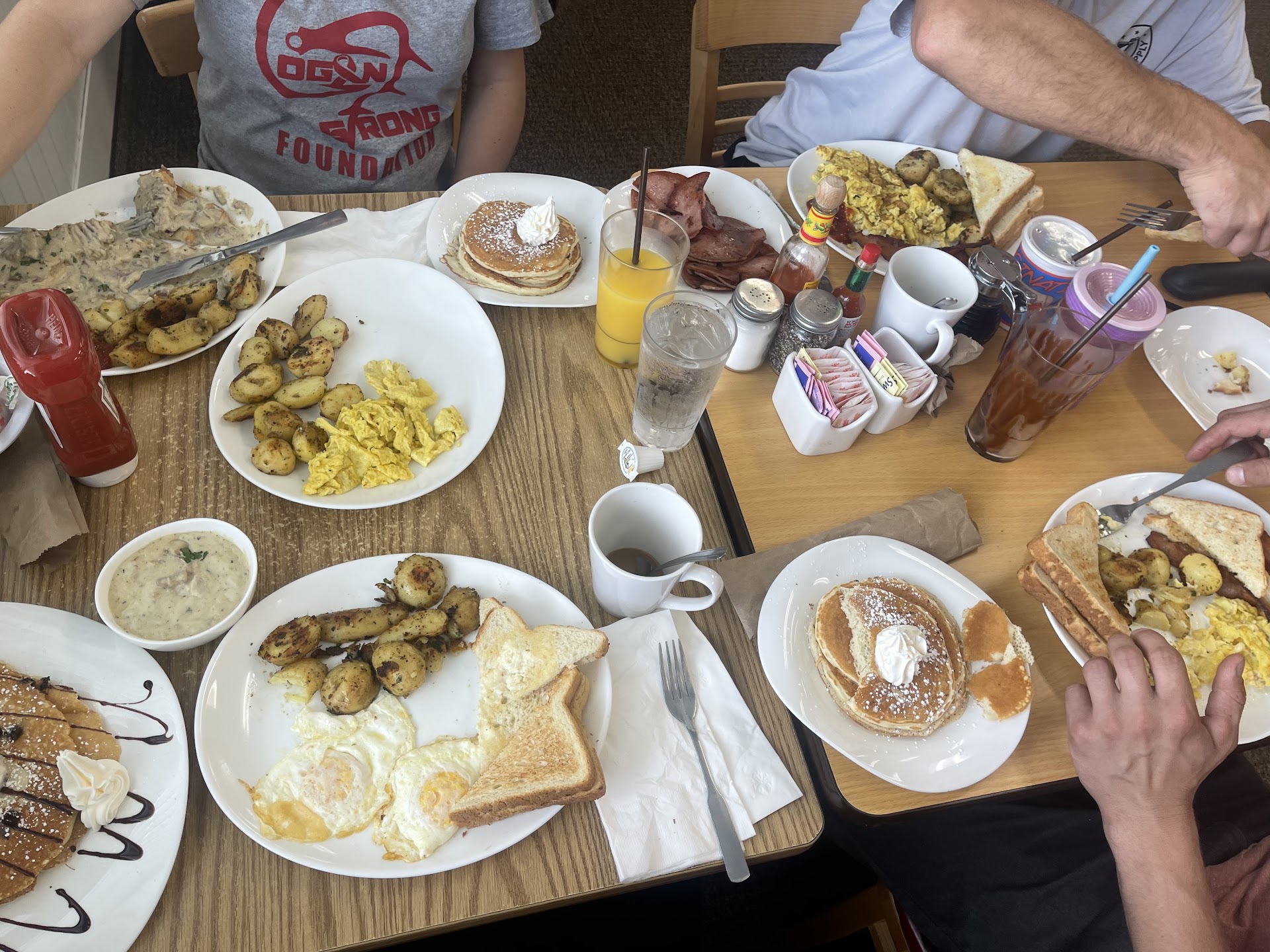First time there and would never be back again the way my family was treated when we walked in by the server ERIC. Did not greet us ( looked at us when we came in no Hi,Good morning or anything) but a family came in after us and was greeted and sat down immediately! When the family told him there were people ahead of them he told them basically oh donāt worry about them. The girl I donāt know her name was supposed to wipe down the table (never did ) never saw her after that but she was our āwaitressā . She greeted us and walked off š. The vibe we felt from Eric was off and he knew it as soon as we sat down. Never have I been to a restaurant that had plenty of open tables and family that had more people (and came in after us sat down immediately) we only had 3 people. I donāt know what this guy intentions where but he left a bad impression on everyone at our table! I told Eric to not even bother with our coffee and drinks we did not feel comfortable at all after that and when I told him that we werenāt even greeted but the other family was greeted and we were ignored by him, he said oh didnāt the other girl greet you? What a joke lol arenāt you supposed to greet everyone not just certain people?? Thats the vibe I got my first time stepping into this place certain people get better service then others.