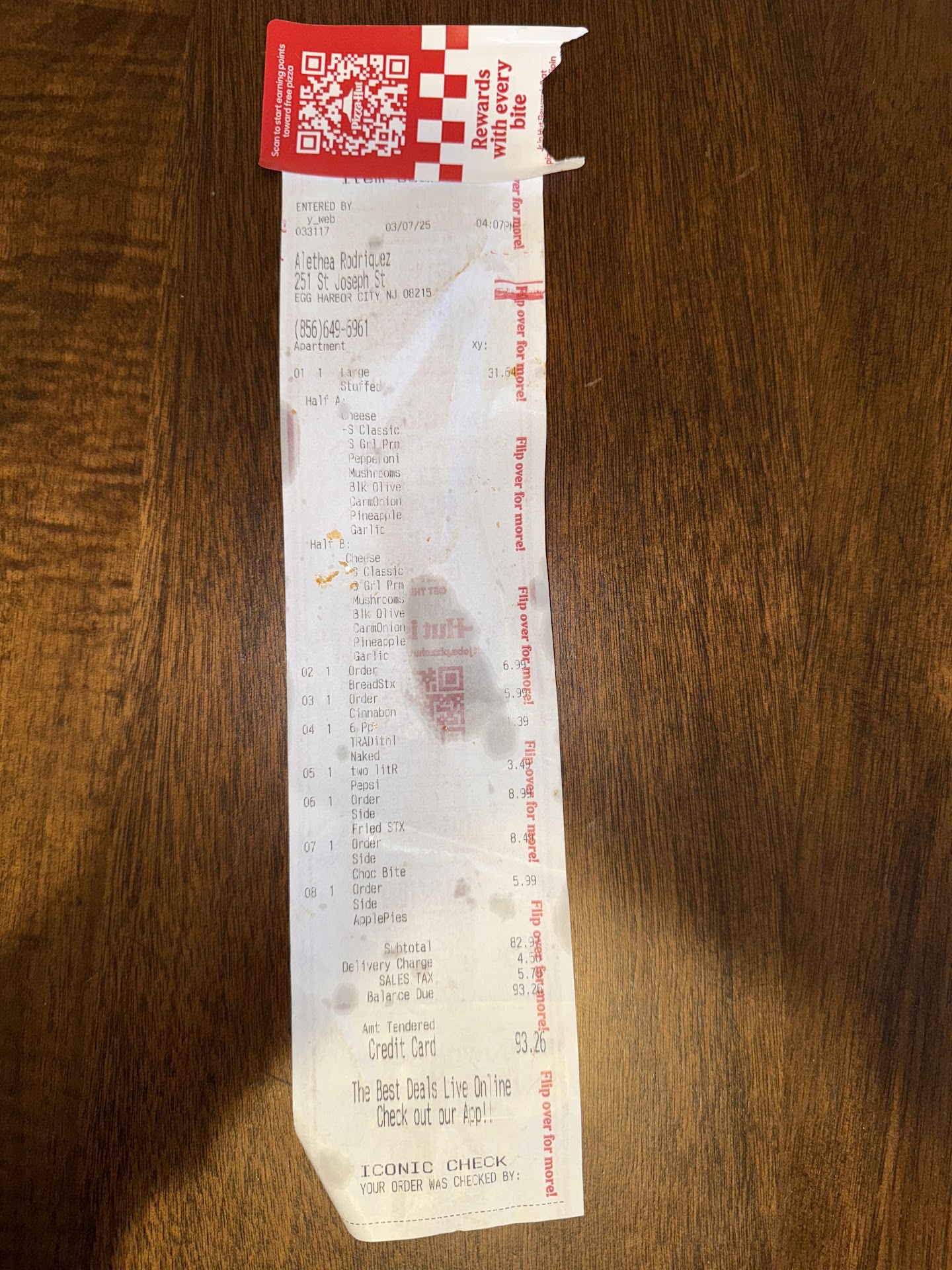 *I'm posting this, after getting no clear accountability for my disappointing order from this Pizza hut Location in Absecon ,NJ as well as from corporate , after receiving a email that I would be contacted about what happened.