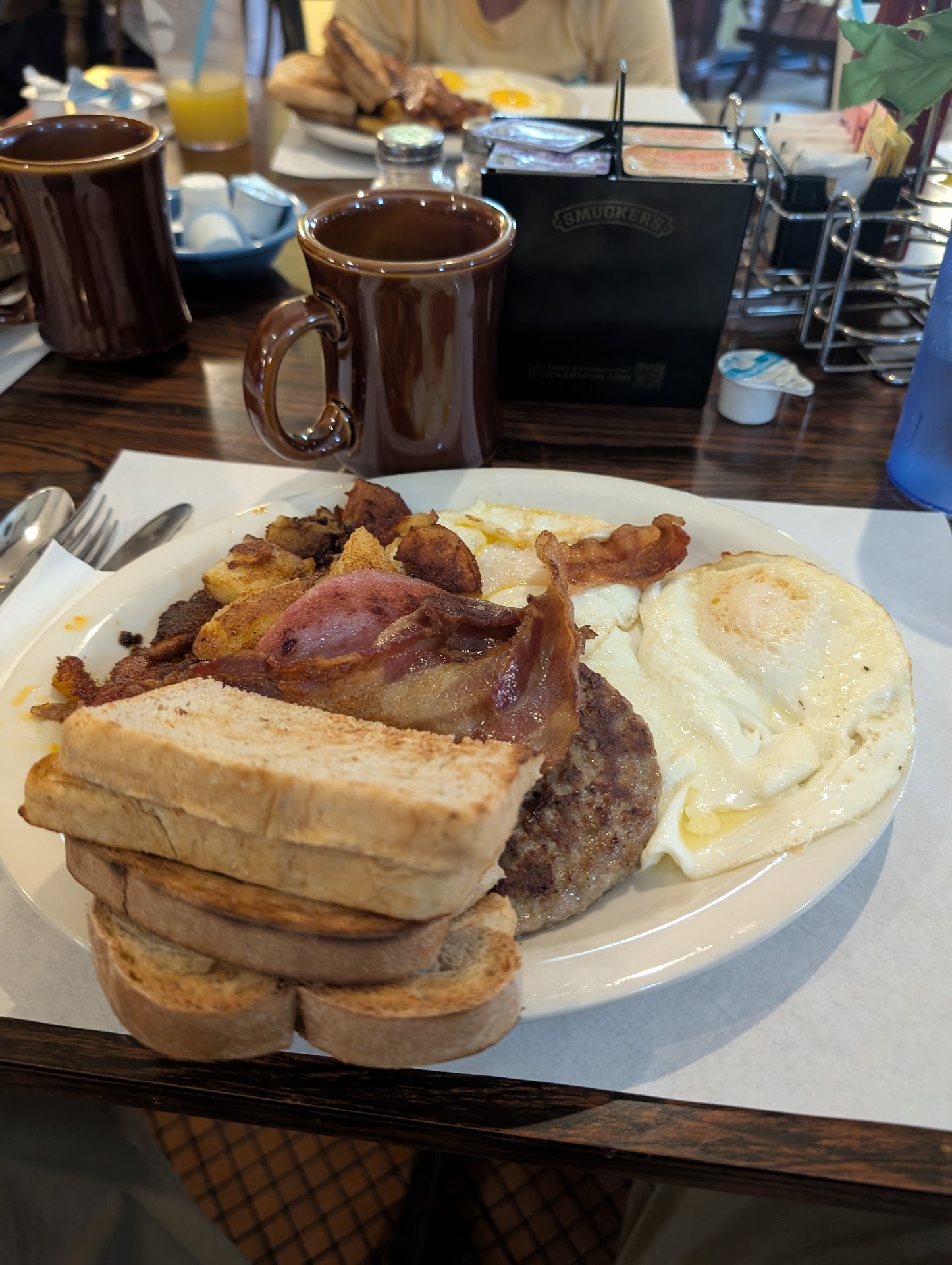 Read moreI’d like to start out by saying that breakfast there is good, however, I purchased a bear claw from the bakery part, and when I got home, it was hard as a rock. I trashed it. Also had asked if they had any more coconut custard pies which they used to make all the time. The employee was not very nice and had an attitude and said we don’t make them anymore and I was surprised. I told her it wasn’t long ago that we had one, and if they would be able to make it if we ordered and she said very firmly, no, we don’t make them anymore. This was for my 94 year old father-in-law who always said theirs was the best he ever had. We decided to call them the next time and ask on the phone if we could order one, we did, and lo and behold, they said, not a problem, just order a day in advance. Another issue we had was not long after that when we brought my father-in-law in for a donut. We purchased the donut and asked if he could sit at one of the tables to eat his donut because he couldn’t stand on his legs very long. The employee was extremely rude and said, no, they are for patrons who come in for breakfast. It was not busy at all, mind you…and how long would it take for someone to eat a doughnut? This man is a war veteran , 94 years old! What a disgrace! We decided we won’t be going...