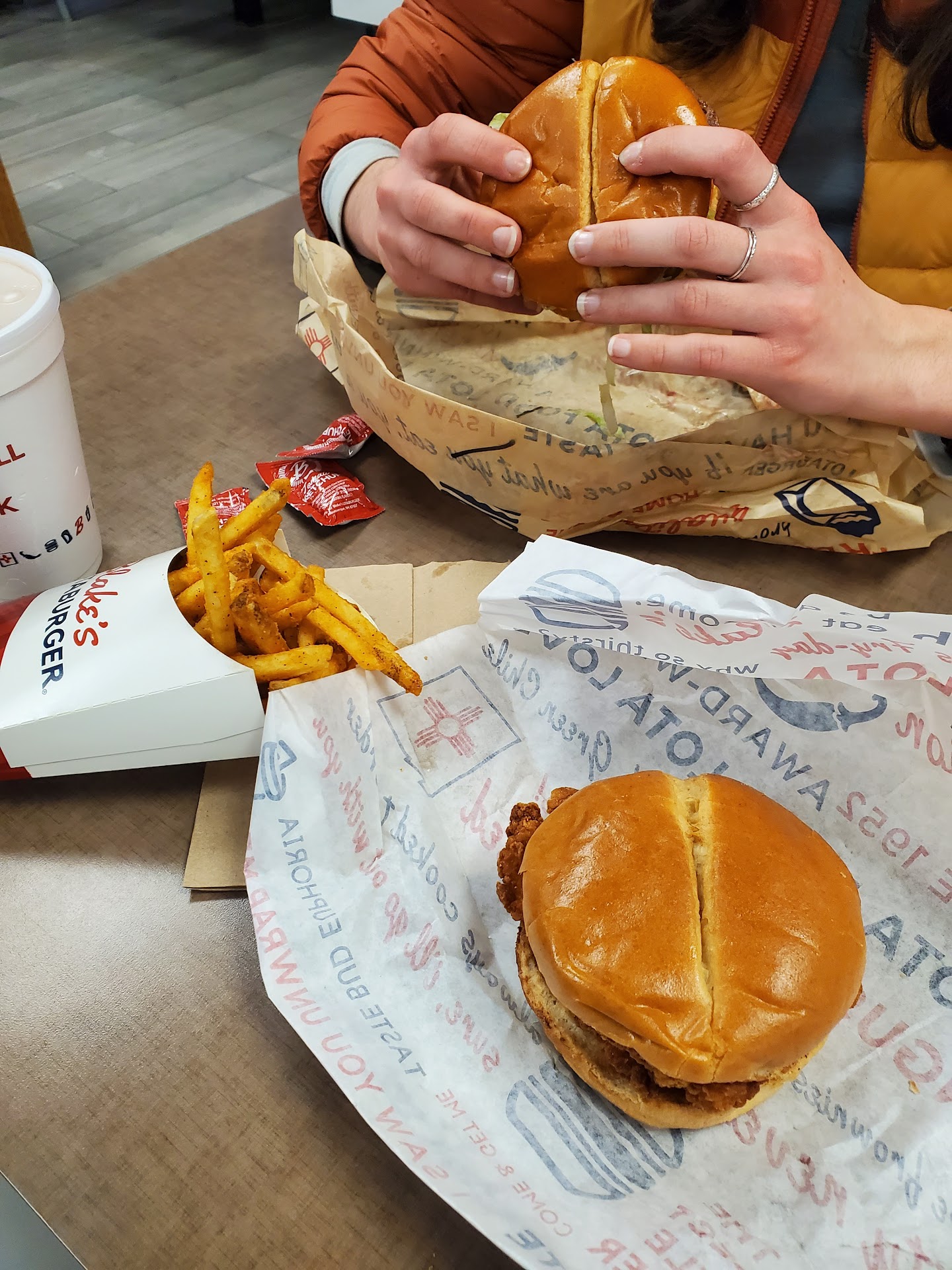 Read moreWhere do I begin. Very few people were present when we got there, no one in line, LOTS of employees and yet still waited to have our order taken by a woman who had been cleaning. We were given a 'table' number so we proceeded to sit and wait. While waiting, a manager came out to ask a seemingly homeless person to leave, he had been asking a customer for money according to the customer. He spoke with us for a bit about my husband's piece of jewelry and while the conversation was happening, a number for an order was called. We wondered if it was our order, but the manager assured us that our food would be brought to the table. Sitting and watching numerous customers enter, order, and receive their food, we finally went to the counter to inquire about our order. Sure enough it had been the one called for over ten minutes prior. Needless to say it was cold, so half of it had to be redone. No apology was given, another homeless person was harassing customers again, the manager at one point left, and I ended up feeling very nauseous on the drive back to ABQ. HORRIBLE food & experience. Such a shame. Definitely not up to the usual standard of Blake's...