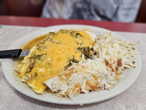 Read moreFood was good, basic diner food along with some good native American options. I had the huevos rancheros with both red and green sauce. I liked the red better, it was spicier and had a few nice chunks of meat in it. The green sauce was thick and mainly chunks of green chili's, I probably would have enjoyed it more if it was more blended. My husband's burro was more of a tortilla just folded in half instead of an actual burro, but he said he enjoyed it. The beans and rice were standard, nothing special or to write home about. But over all a good meal.