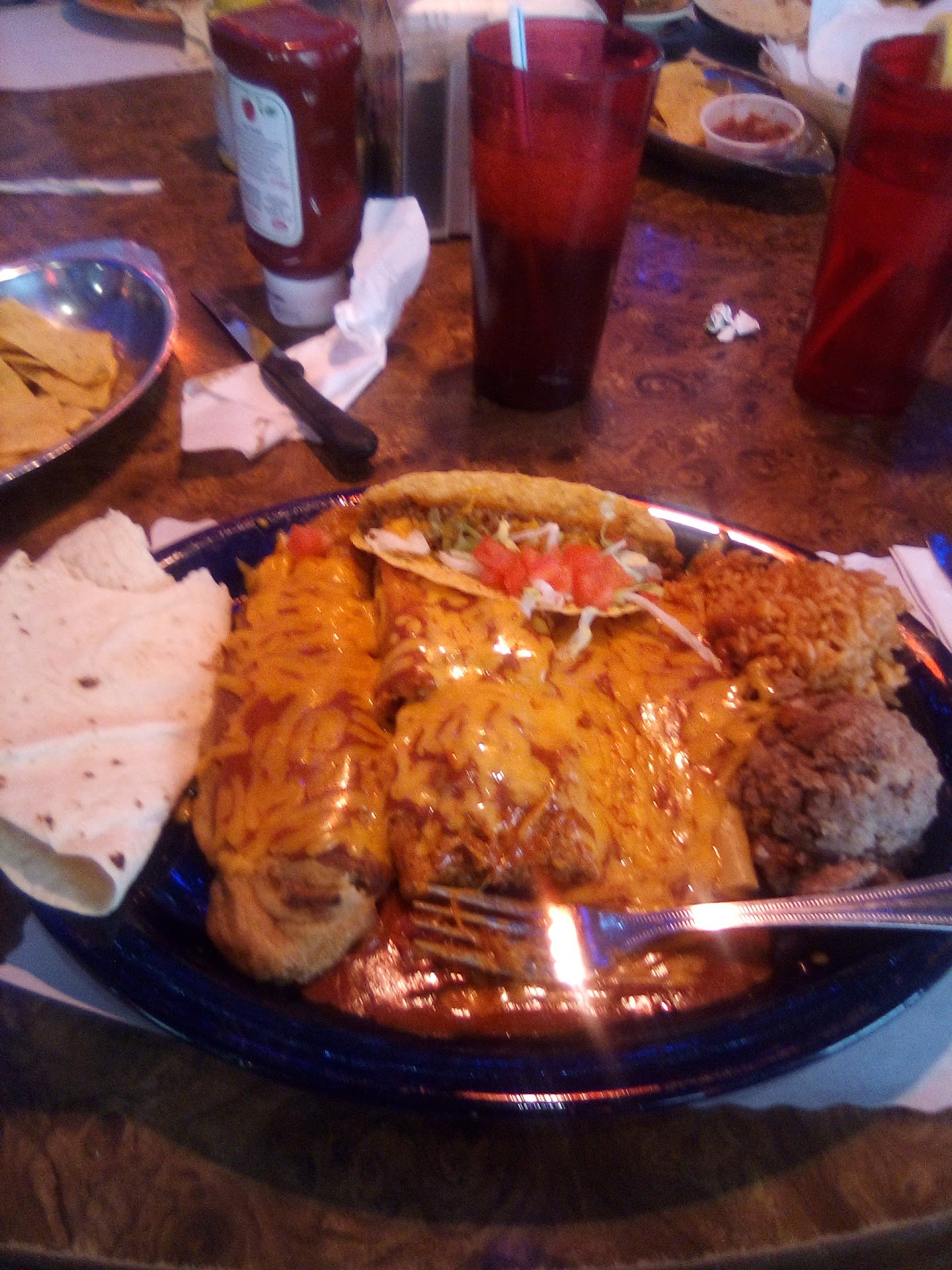 I grew up here in Gallup New Mexico in my younger years. This restaurant here was my mother’s favorite place to eat. Rip mom 🙏🏼 anyway, she would always bring me here to have lunch or dinner so, I decided to travel from Phoenix Az all the way to Gallup New Mexico w my wife and sissy to eat here and enjoy some Authentic Mexican Food. It was my wife’s first time coming to Gallup.. we all ordered the green chile stuffed sopapillas and a side of sopapillas to enjoy w some honey. Wifey loved it and sissy and I did as well. It was worth the trip. If any of you want to try some real Mexican food w some real New Mexico hatch green Chile then this is the town and this would be the restaurant.. our dishes were huge.. I mean we didn’t even make it half way through our sopapillas and we had to get To-Go boxes haha… delicious thank you for such wonderful service and the best food we’ve had in a really long time. We love you Gallup New Mexico!!! Bomb Mexican...