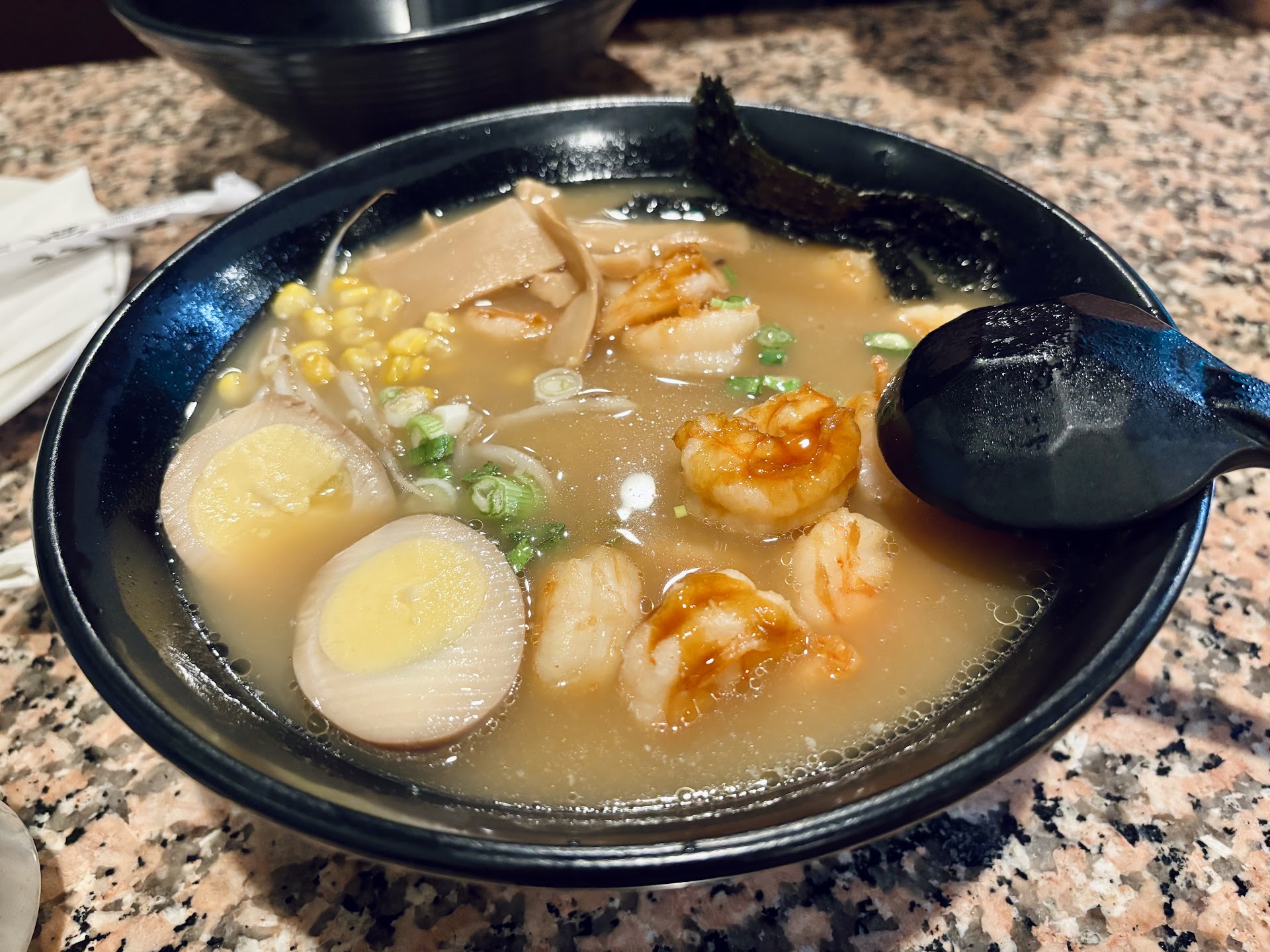 I ordered a bowl of shrimp miso ramen. To be honest, the taste was quite average—not particularly delicious. The shrimp was a bit overcooked, and the noodles felt slightly undercooked and not fully loosened. But at that moment, I just wanted a hot bowl of noodle soup, so I didn’t have high expectations.