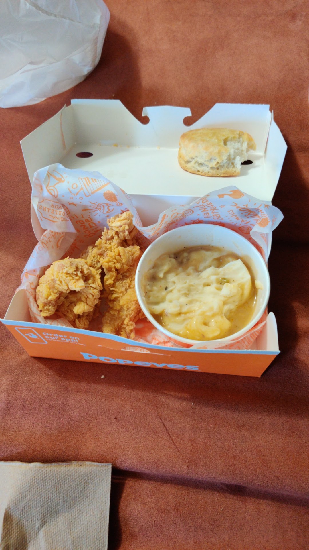 Read moreWe’ve ate here a few times, the food tastes like normal Popeyes-good-which isn’t something you can assume in Gallup… But the service is on par with Gallup’s norm. Below average. Always check your order around here, it’s more common for it to be incorrect than correct. And not only did they forget the Mac n cheese side, as you can see in the picture once we got it they didn’t even fill the little container halfway 🤷🏻♀️