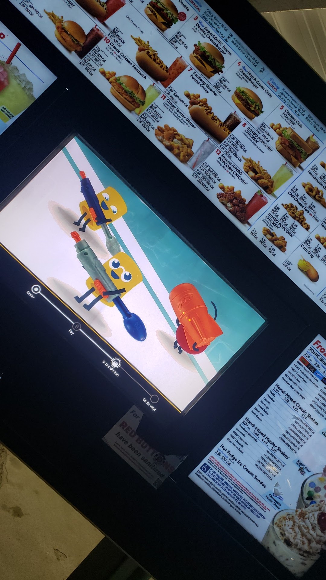 Read moreOmg this was awful. So sad. The customer service was lacking the food was not that great. We don't do Sonic very often and when we do, normally it's absolutely worth the calories and junk and all that goes with it. This time however it was not. I still tried to choose something on the healthier side and couldn't find the "healthy" options on the menus. Usually they're flagged in green or something. It took forever to get the food and then when my fiance asked if they'd fill his water bottle with ice water she had to ask the manager if it was ok and then put the smallest amount of ice in his cup. All of that coupled with how far off the freeway it was and I'm never going back...