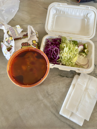 On another trip there, my husband and son ate in the restaurant and brought home an order of pozole for me. It was delicious!!! Itās so nice to have a place to get pozole in town. There was a very generous amount of pork in it. Plus, it came with a container of all of the usual additionsā red and green cabbage, radish, cilantro, lime and oregano. I wish there would have been onions. It also came with tostadas instead of regular tortillas. The soup itself was very flavorful! However, it was significantly more greasy than Iām used to. Still, it tasted great!