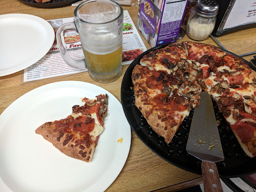 Read moreFriends took us to lunch here. We thought the place was going to be packed because there weren't many places to park; must be shared parking with other businesses. Wasn't your typical dark pizza joint atmosphere. Plenty of sunshine able to shine in making it very light atmosphere inside. Have to say, the pizza was pretty darn good. Not my favorite, but that just my personal preference. We ordered a half pepperoni and half combo. Their crust is thin, but didn't have that floppy thin crust feel. It was nice and golden- like you get with a pan pizza- just thin; if that makes sense. I'm not a fan of mushrooms, so I pick them off. Was nice to see they were actual slices of mushrooms and not these paper thin ones that coat a pizza like other places. (Made it easier for me to remove) So if you like mushrooms, they have actual sliced mushrooms you can taste. They had a selection of arcade games for the kids/adults and some coin operated claw machine type things. The main ones I noticed were: a Walking Dead pinball machine we had fun playing, and on the opposite side there was a massive Minecraft Dungeons game with places for up to 3 players and a Jurassic Park driving game you sat inside. They also had flat screen TV's around the place up on the walls and a small bar area right when you walked in the door. Definitely a place I would eat at again next time...