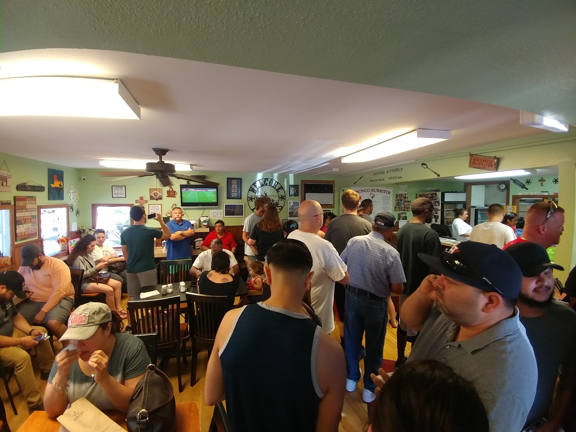 I've been wanting to eat here for a few years now. When I first heard about the place, they had unfortunately closed due to a fire. I belong to a food group on Facebook and people would mention how much they missed it. When it re-opened I tried a few times to make it, but things didn't work out. My wife and I took a staycation in Galveston this week and planned our stay around being able to try their famous "Bronco Burrito." I can honestly say, it was worth the wait. It was pouring rain out, and when we entered 45 minutes before closing, the restaurant was still packed. The customers and employees both shared smiles, and we were greeted immediately. The young lady at the front asked if we had ever been in before, and after we told her that it was our first time visiting, she went over the menu in detail, leaving no questions unanswered. We did in fact decide on the Bronco Burrito, it arrived fat, fast, and piping hot. The combination of perfectly cooked eggs, chorizo, and bacon didn't need any seasoning at all, well, other than their delicious homemade salsa verde. The spice from the salsa was cooled from the shredded cheese, and the acidity married fantastically with the pan potatoes. As tasty as all of those ingredients were together, the star of the show was the soft, buttery tortilla that held everything together. My burrito was dripping with salsa, and the tortilla held it's integrity until the very last bite. I would eat here time and time again just based on the merits of how good that the food was. But the friendliness, and the attentiveness of the staff is something that is missing in most of today's food service establishments. From the cashier, to the kitchen staff, and what I believe may have been the owner, they were all fantastic. Thank you Bronco Burrito for tieing the bow on a very special and much...