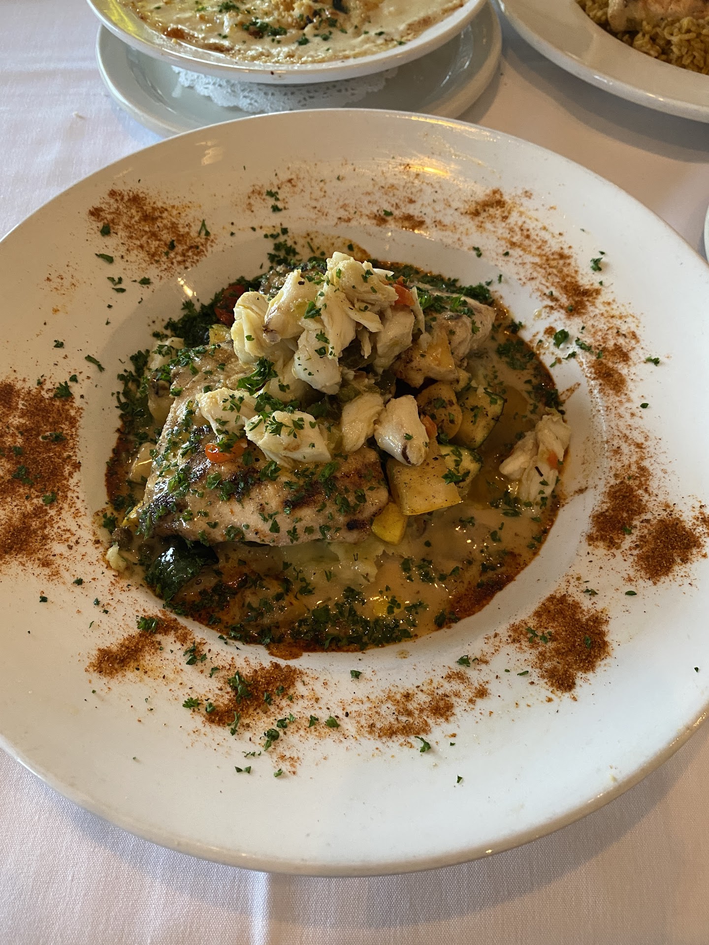 We sat down not knowing what to expect she greeted us quickly with her super friendly yet professional demeanor. She then took us on a journey of the history of Gaidos and how it has been around over 100 years. She even shared the original location and how it came to its current location after a major hurricane and has the largest kitchen in the state for restaurants. Just really neat history of the business and I am a geek for that stuff.