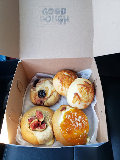 Read moreThis place has amazing kolaches and most of them aren't your typical fruit filled ones, although they do have some of those. The flavor combinations are terrific and the names are whimsical, like Cha Cha Cha for Birthday Cake, which are very good by the way. Ones that my family have enjoyed are Teacher’s Pet (Caramel Apple) , my favorite Sam I Ham (Ham + Cheese), The Fungus Amungus (Dilly Cream + Fresh Mushroom - really unique and flavorful), Show Me Your Bloobs (Blueberry). Not everything is available every day so you need to plan ahead or go multiple times. I'm tempted by a number of other flavors but haven't had them yet. The dough is more cake like than some of the other kolaches I've had. I was sorry to see that Bear Fruit Bakery close but it is great that Good Dough has opened and is offering this area...