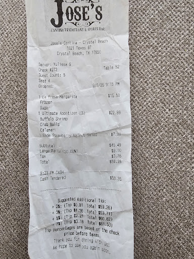 This was my first time at Jose's Cantina and we only came to try it because Tia Juanita's was too busy. Every time we go to Tia Juanita's, they make my kids cheese quesadillas with corn tortillas even though quesadillas isn't even on the kids menu. Now that is great customer service from a restaurant who cares about their customers.