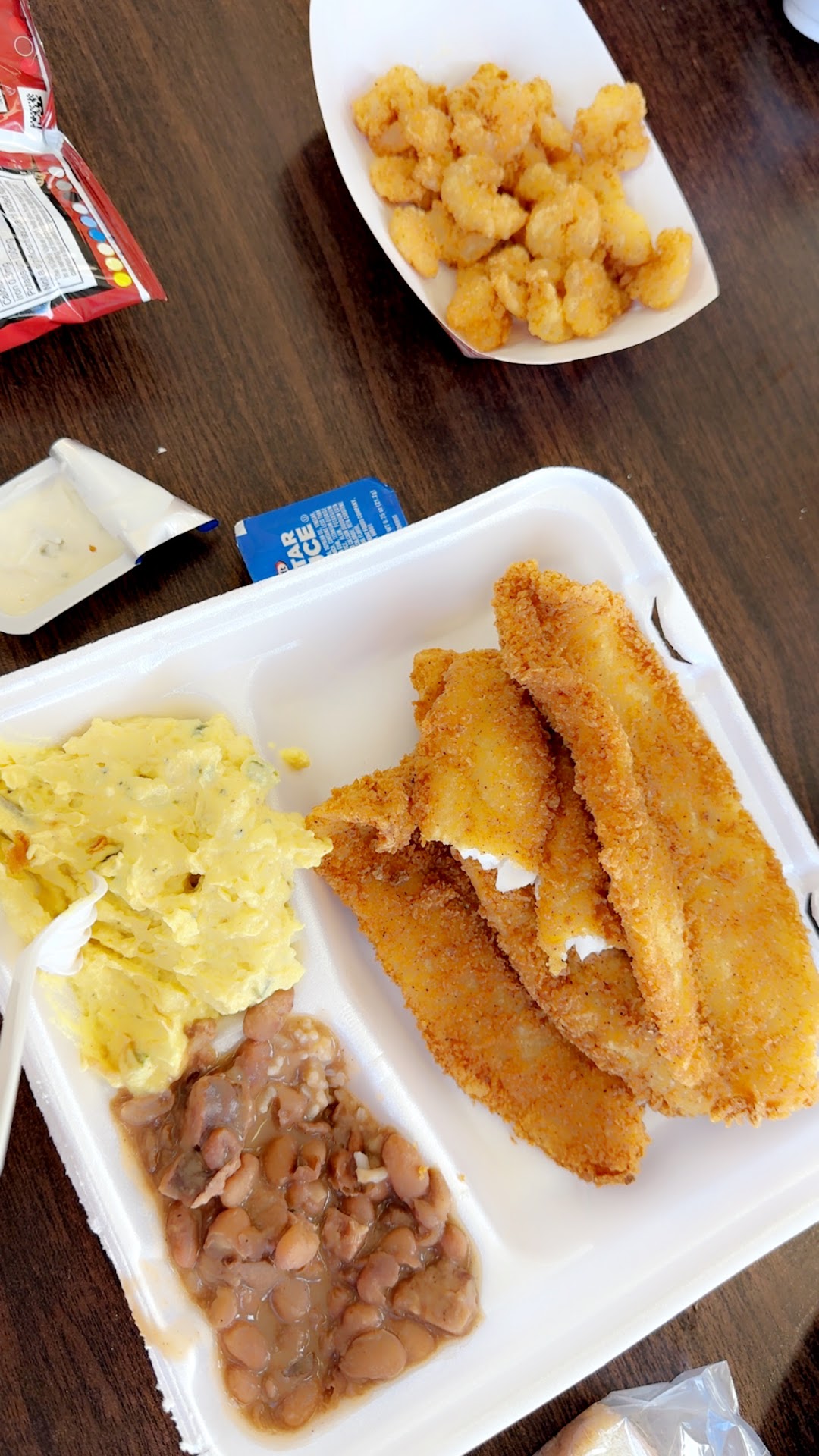 My only complaint is the seafood gumbo. I ordered a small seafood gumbo, when I went to go eat it, it did not have ANY seafood in it at all. I called, thinking the cashier made a mistake and gave me chicken and sausage gumbo. They assured me they gave me the seafood and told me to bring it back and they would replace it. I brought it back and the cashier gave me another small seafood gumbo and let me keep the first one, which was nice. However, I got home and the replacement seafood gumbo, had ONE small shrimp in it, and two crawfish tails, but huge chunks of chicken. My complaint is that they charge more for seafood gumbo and so they should make sure that the order actually has seafood in it. The time before this, I ordered chicken and sausage gumbo, but the roux tasted burnt :(