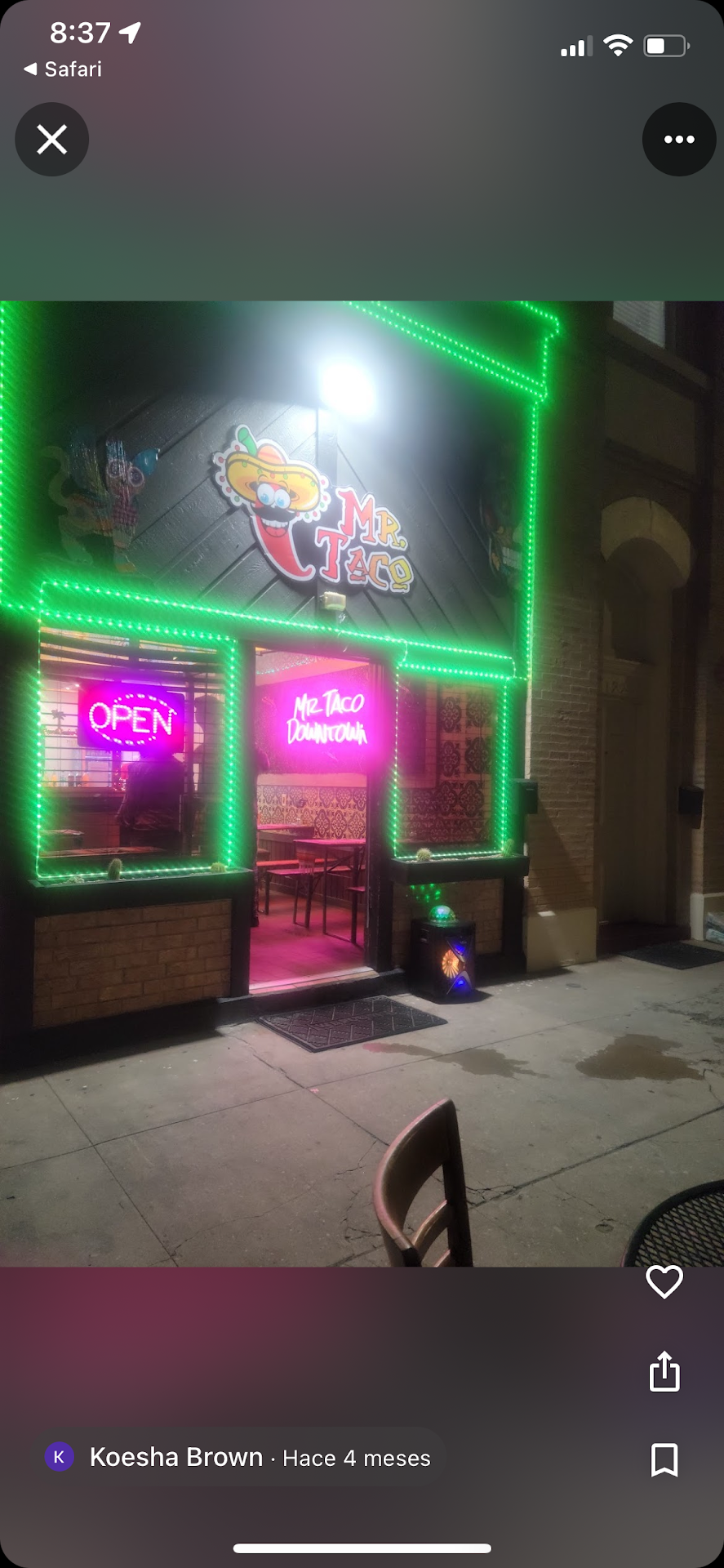 Read moreYou walk up and see outdoor seating & cute lil plants which pull on my heart strings. Entrance is pretty hip. Open door and it's surprisingly small but the vibe it gives off is super rad. You walk up to register and you can see chef cooking food as you order. Super clean in lobby and kitchen. Love the hip wall paintings and they have sports on t.v. We ordered the guacamole and it was served in cocktail glass with chips and pork skins. I'm picky about my guacamole because at most places you can taste the preservatives. NOT HERE!!!! THEY MAKE IT FRESH & it shows So we ordered 2 sets of street tacos and chicken quesadillas. Cardi Asada & chicken were off the chain, pastor was a tad bit salty but I'm sensitive to salt. Everything was awesome. They even had a good selection of of drinks. Lastly the staff was awesome. Super helpful, inviting & helpful. Even bumped into the chef at the local grocery store later that day and treated us like hometown regulars. We will definitely visit again soon. Nothing but good things to say...