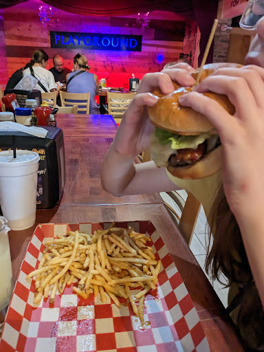 Read moreThis burger place and bar was a nice surprise. We were hungry and looking for burgers and good drinks. This place had exactly what we needed. With a great selection on the food and bar menu, our decision was easy. The staff were helpful with great customer service. We tried the frozen and on the rocks version of their margaritas and were not disappointed. The burgers were not wimpy in any ways and had great flavor. They offer indoor and outdoor seating. A little stage for live music and video games for entertainment options. Highlights were the burgers, fries and onion rings. Not one complaint from our table and even our picky kid ate everything. Sooo good and a...