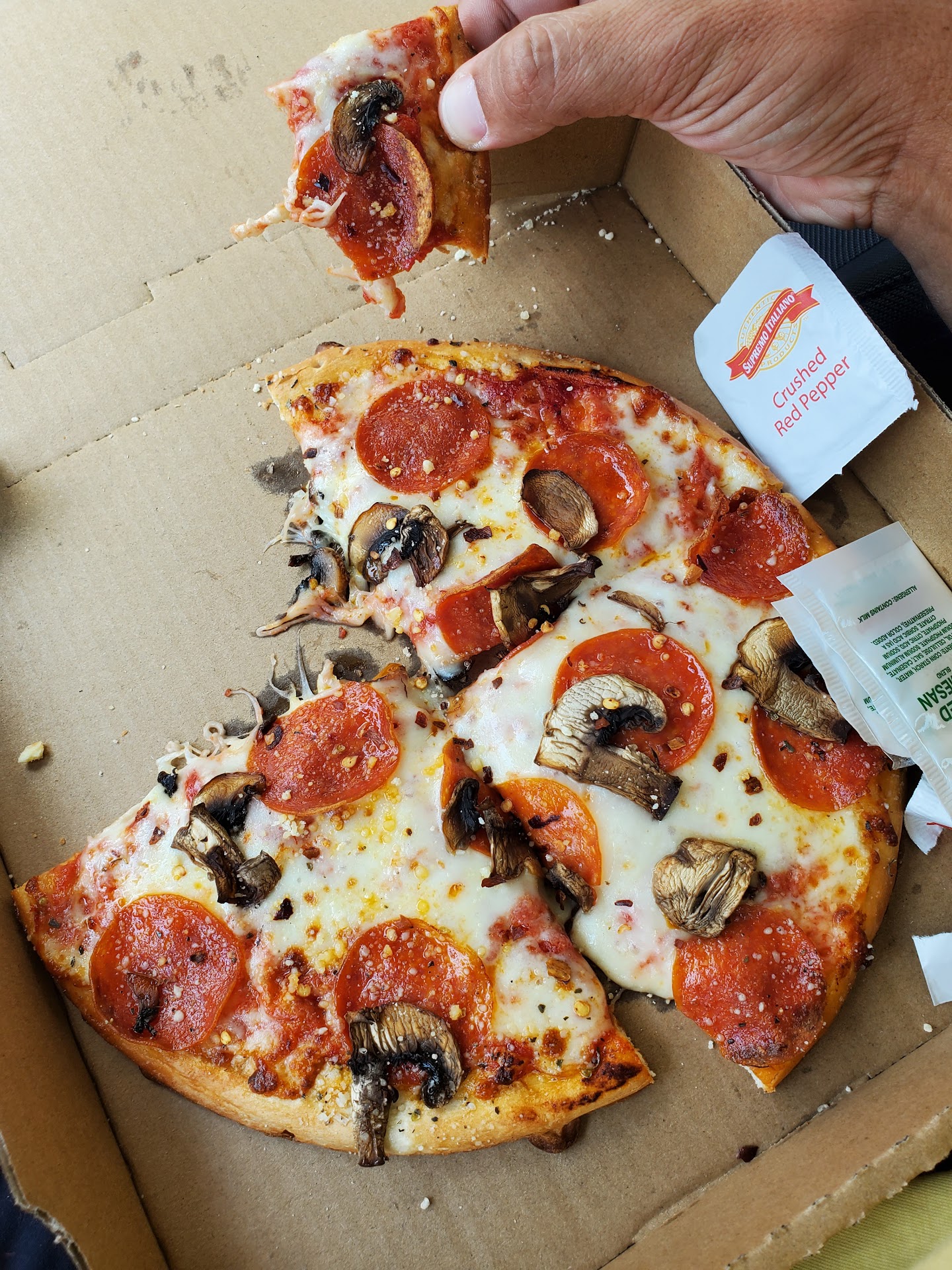 Read moreIt was okay. My wife and I ordered a medium pepperoni. It came fairly quickly, but it's hard to say if this is fresh or authentic. The crust looked as perfectly round as frozen pizza or already made crust. If it was "home made" or "fresh" it would not have looked this perfectly round. I felt as if someone opened a frozen pizza, took the pepperonis off, added some cheese, put the topping back and then lined the crust with some parmesan. We did see a family next to is order a large and the crust did look more like a restaurant pizza. Probably won't go back. I'd rather deal with the rude bartenders at Murphy's right around the corner for...