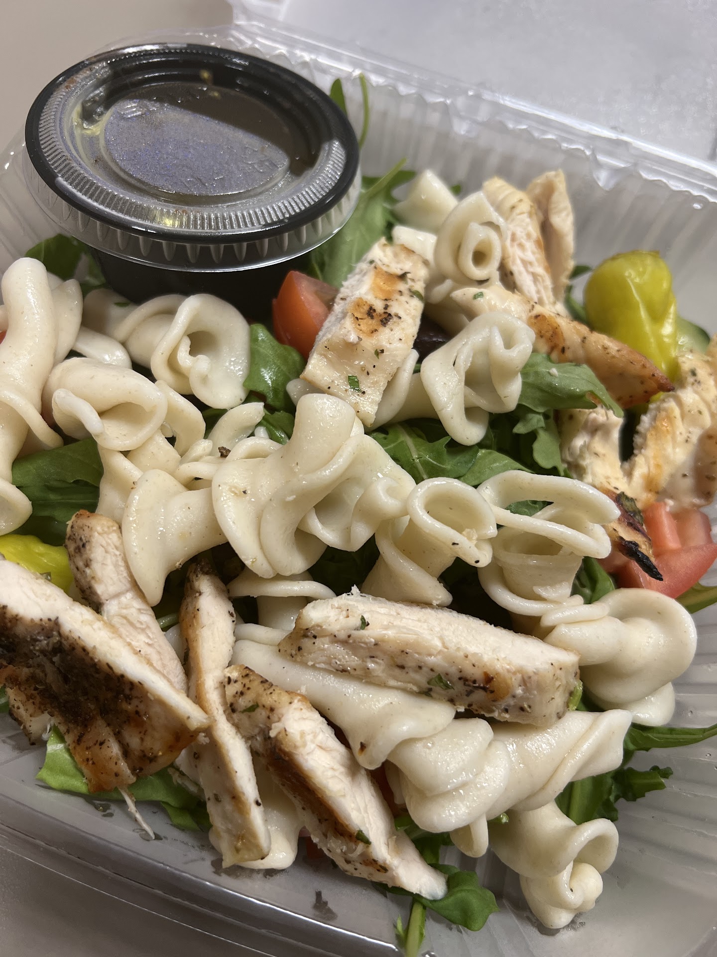 Late night stop was a hidden gem in Galveston. We enjoyed the Insalata Caprese and a large pizza with half Italian sausage, pepperoni and mushroom and the other half Hawaiian; although almost got the fig and prosciutto. The Caprese was a huge portion, made with fresh, buffalo mozzarella, tomatoes, fresh basil, and drizzled with olive oil and balsamic. Initially, we thought “wow ! We will be taking half of this home." Five minutes later, it was gone! It was perfectly chilled, fresh and delightfully delicious! We could’ve walked out of there right then and been perfectly satisfied! It also came with some pizza crust thins with garlic and an olive oil dip. While their pizza dough didn’t have a whole lot of flavor, it was perfectly thin, New York style pizza with super high-quality ingredients (which made up a bit for the lack of any real flavor in the crust). IMO and experience, they should allow their dough to sit for a day or two to develop some flavor. I will say that as much as we enjoyed the food, I found the walk-up and order concept that they support quite weird!!! Their personnel behind the counter literally has to instruct each and every guest walking into the restaurant that they need to proceed to the counter to order, and then take a seat and wait. Every guest we observed appeared quite confused the moment they walked in. Honestly, it wouldn’t take much for them to come to your table and actually take your order. They have plenty of great staff on hand to facilitate this process. As wonderful as the meal was, their carrot cake was deplorable. It was a dried out slice of spice cake pretending to be carrot cake. Two thumbs way, way down on our dessert. Update: visited again in March 2024. Their Caprese Salad is surprisingly phenomenal AHS is one of the best I’ve ever had including many we’ve had at numerous fine dining establishments all over the country. Simplicity at its best. The ingredients were fresh and served at the perfect temperature. The dipping oil for their “bread” basket is also work tasty. Pizza was great tasting, perfectly cooked and made with high quality ingredients. BUT Manager, owner, somebody PLEASE rescue their dessert offerings. If homemade, change recipes! If outsourced, change providers. They are an insult to your business and your customer’s palates. Coming from me, a serious foodie, I would rather eat a gas station carrot cake than EVER assault my taste buds with either of the desserts we tried on two different visits (carrot cake, cheesecake). Gross!! Do better! While I know desserts aren’t your specialty, don’t offer them if you can’t offer something palatable. You can and should do better!! Even offering something that nets the minimal requirement of “good not great” would be a huge improvement. Here is an idea, partner with one of the local bakeries such as Paddycakes! In fact, perhaps the franchise should establish that franchisees can source local bakeries to boost other local business at each of their franchised locations. Just saying….seriously folks, these were...