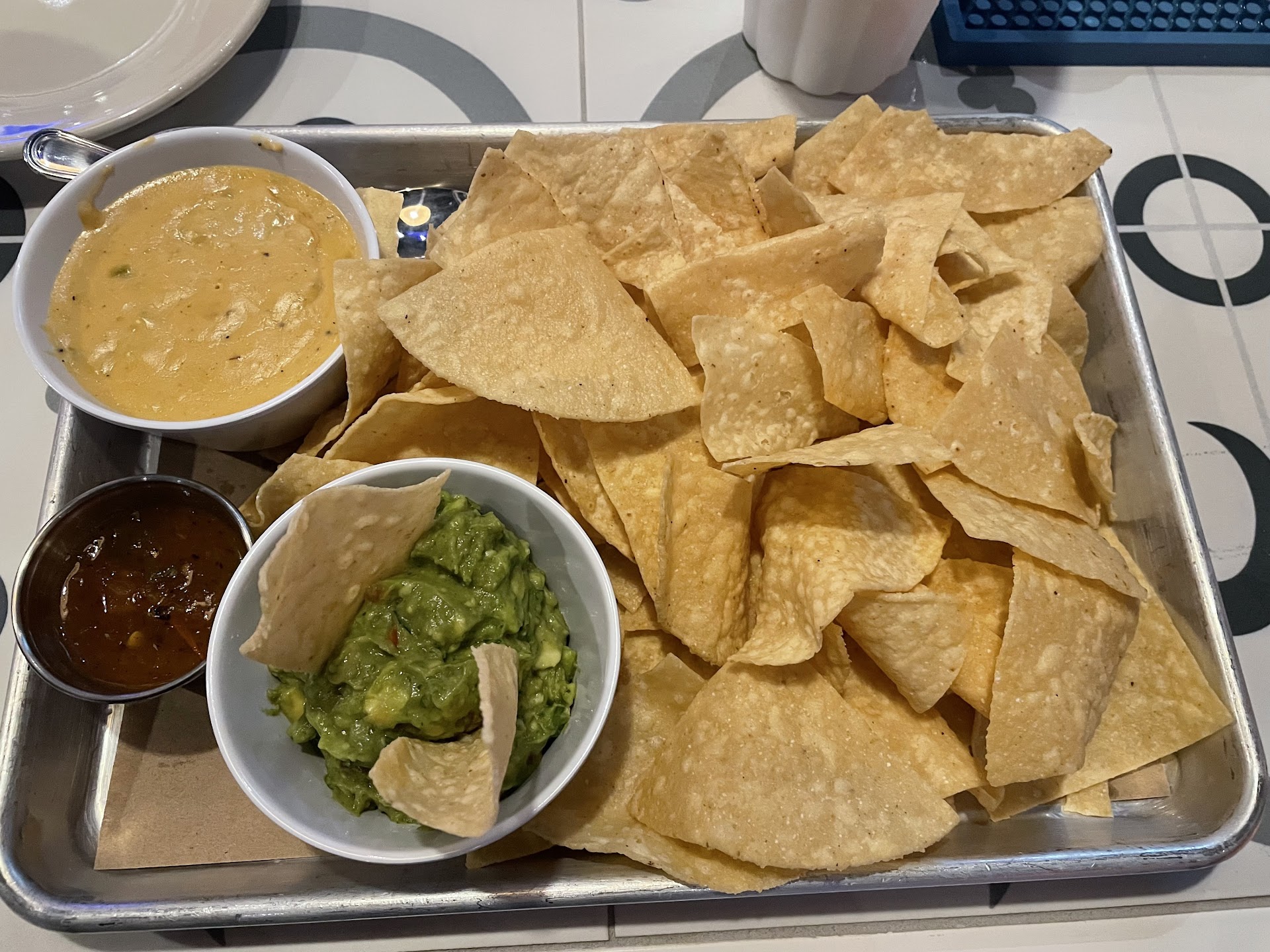 Read moreWe went last night, very excited to have a new Mexican restaurant! It was late so we had chips, queso and guacamole. Chips were warm and sturdy, not too salty. The queso was not out of a can, really thick consistency. Salsa was great too, not too spicy. The guacamole was creamy; we devoured everything. We could have done without the second platter of chips but oh well.