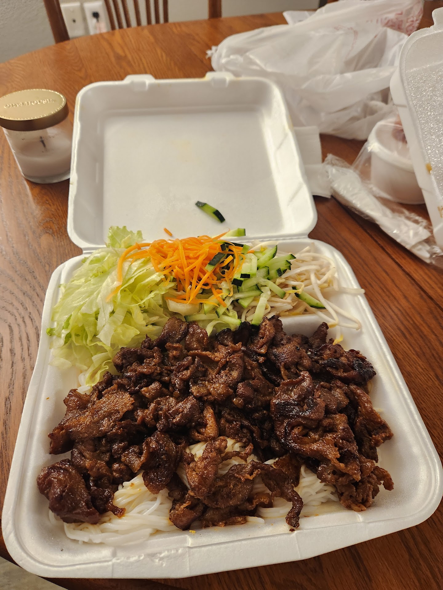 I called to place an order and the phone rang for quite a while. I had put the phone down and let it keep ringing while chatting with my girlfriend and to my surprise a few minutes later I actually heard a sound coming from the phone when someone actually picked up. I placed my order over the phone, two entrees and a side, and was a little taken aback when the employee told me the total would be $40.02. Looking back at what we ordered I really wish I had gotten a receipt because that math does not add up.