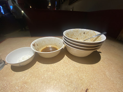 If you think you have added just the right amount of sauce per your taste, apparently the cooks do not think so and will tell you. They will tell you âoh no, more sauce,â and then take your bowl and load up tons more so that your creation is swimming in sauce/oil etc.