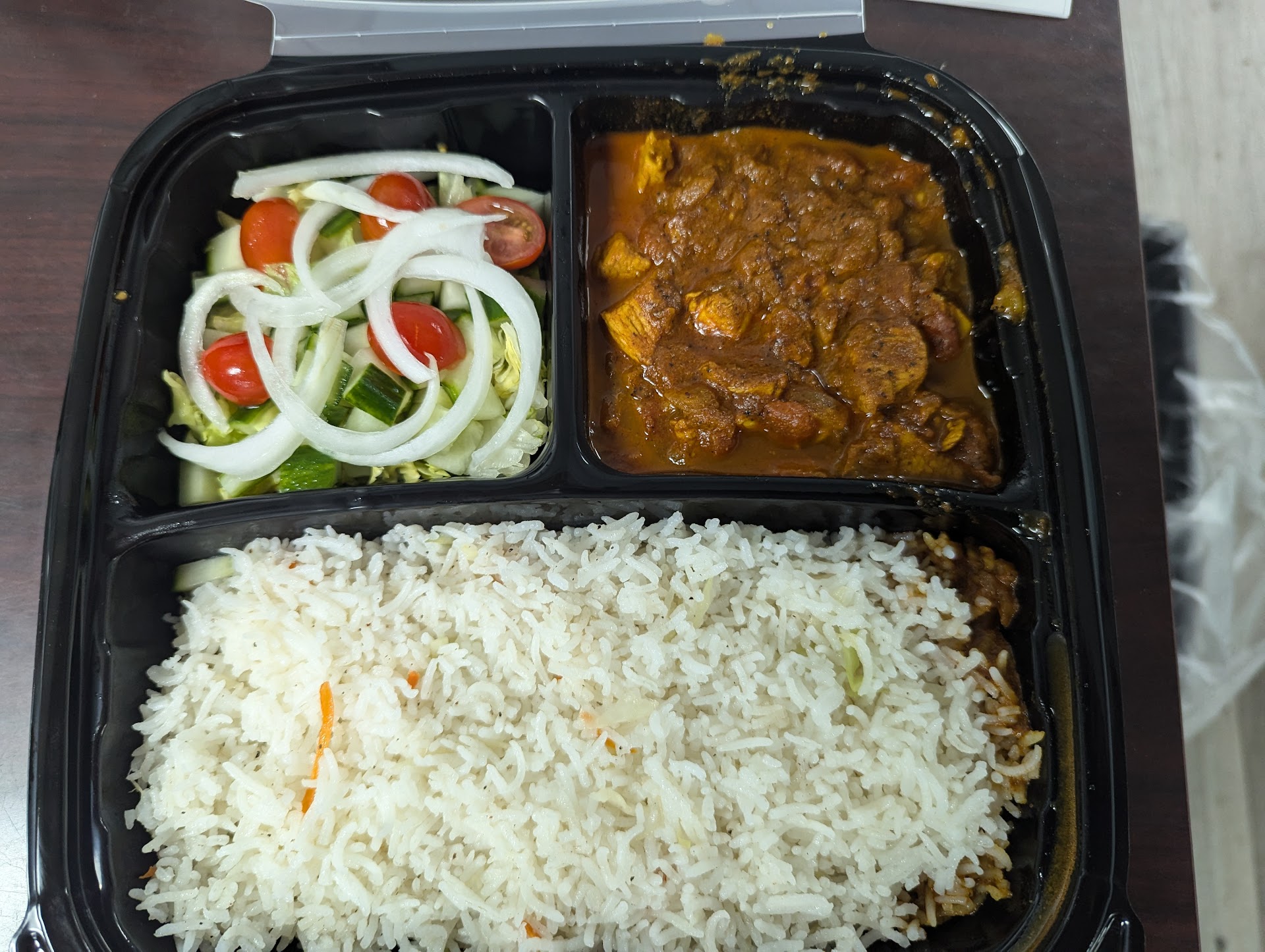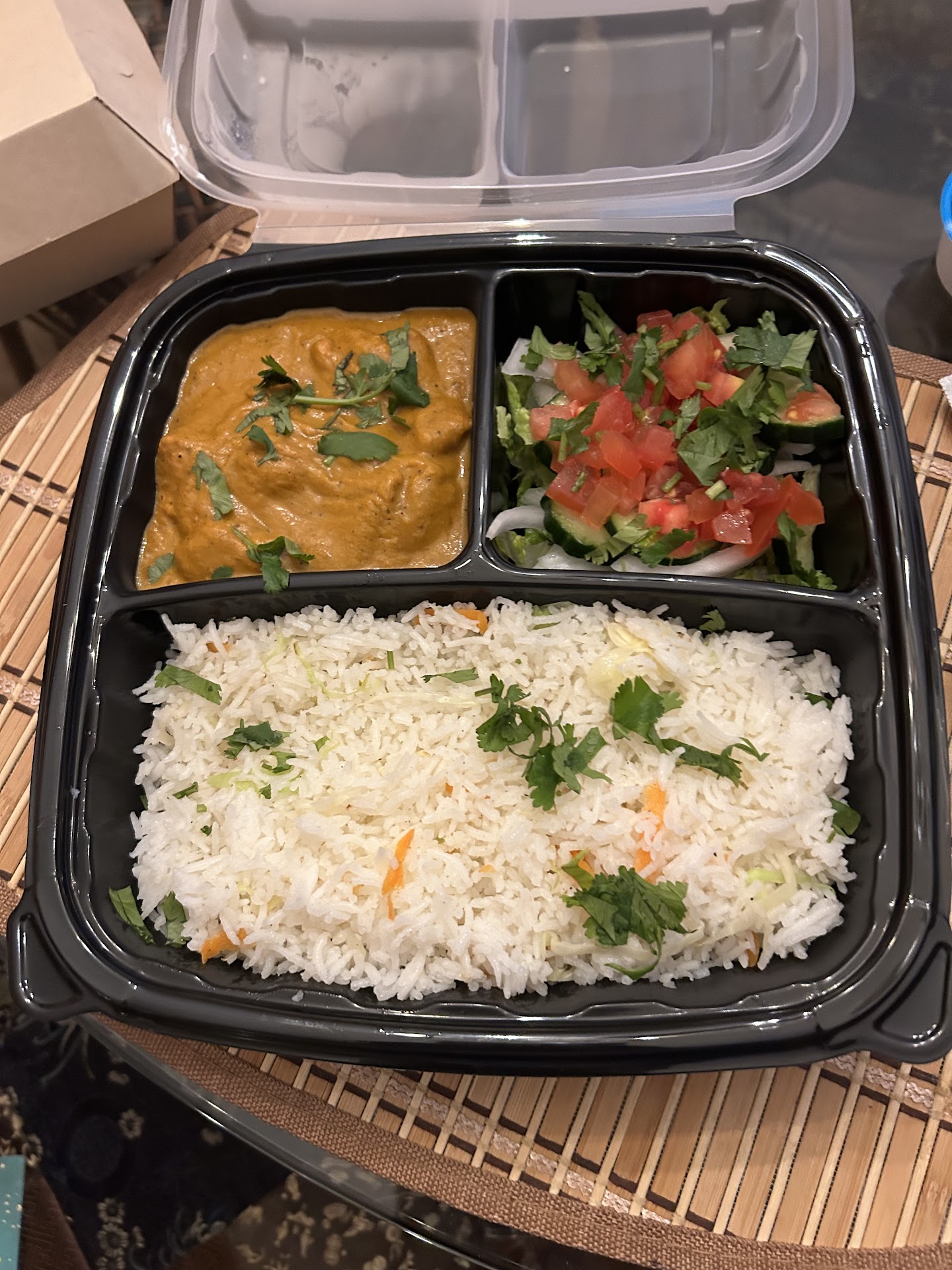 Lastly, and most importantly, the food was delicious. I had butter chicken with rice and salad. I have lived in India, and this was pretty good. The salad was fresh, and the roti was freshly made right before I got it. My wife had the chicken bowl, and she loved it. Again, everything fresh, and the chicken was delicious.
