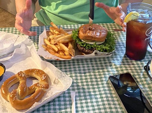 For an appetizer we tried the soft pretzels (2) with cheddar cheese dip ($6.50). The pretzels were coated with butter or oil and were quite good, though the dip was somewhat lacking (not bad, just not that great IMO).