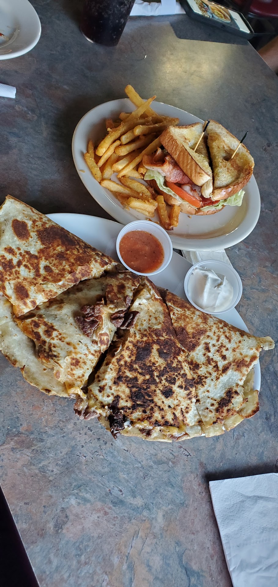 The Service from Brisa s was bad. We only ordered queso with no meat, it came with meat and I couldn’t tell her because she never came back to the table, so I had to get up to talk to her. There were only 3 tables (us included) and she was just standing behind the bar doing nothing. I asked for the check and she took a while to bring it and then sat it down real fast and ran away, without saying anything about having to pay on my phone. (I sat my card down so fast when she dropped off the check that I didn’t see the barcode) finally, when I see the barcode I go to pay and see that we were charged for meat in the queso. I make her stop when she’s walking by me (bc she never stops at the table) and told her that we were up charged thinking it was a mistake. She tells my husband and I that bc we got it as our meal and we were both eating it there’s an up charge for it being and entrée. WOULD...