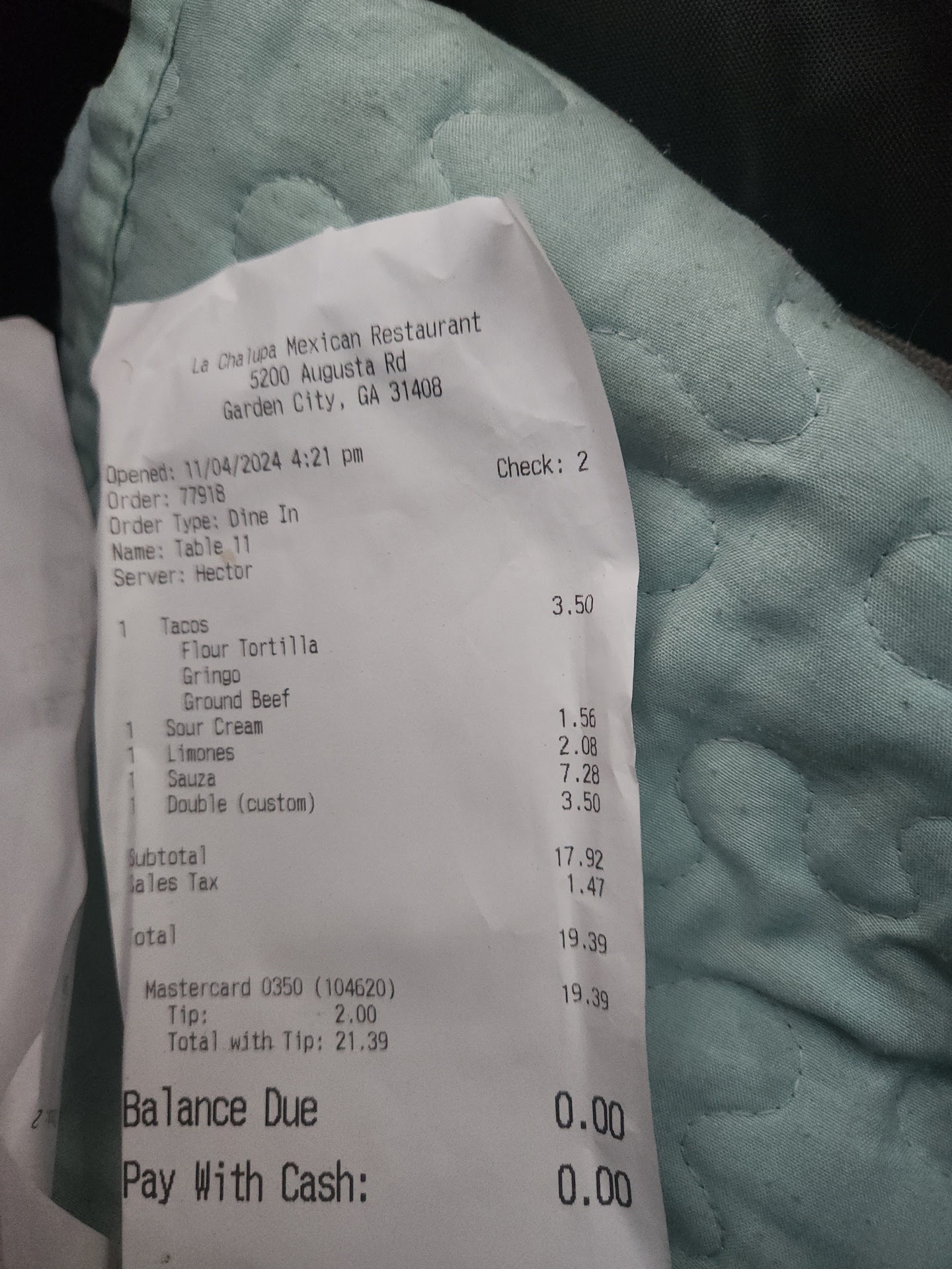 Read moreI have been frequenting another local Mexican restaurant both during my off time and my lunch breaks from work, always getting the torta and/or tacos. At the time, it was THE best I’d had and would not accept anyone else around could be better. A friend at work told me to give La Chalupa a chance. Fridays are for my wife and I to spend a few hours together for lunch and shopping, so we dropped in for an early lunch. The first option presented was their lunch buffet, and although enticing, I already knew what I wanted to try. Thankfully we got there before the regular lunch crowd, as it got pretty busy by the time our food arrived. This was clearly a popular spot that I had ignored for far too long. My choice of a Torta Asada (beef sandwich) and Taco al Pastor was beyond perfection, and nearly gut busting. The al pastor was cooked just right, and their mild green sauce put it over the top. The Torta had a toasted bun, melted cheese, and a lot of flavor. Neither needed the green sauce, but I can never help myself. La Chalupa easily put themselves at the top of the list of my favorite Torta in the Savannah area. Anyone who has driven Hwy 21 on a weekly basis in the Garden City area has seen this place and probably didn’t give it a second thought, like myself. This is called human error. Give them a try. They do fresh cooked, real al pastor on Wednesdays and Saturdays, and $1 al pastor tacos...