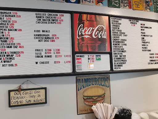 Read moreThis is my first choice for a burger and fries place at Bear Lake. As a gluten free person, I love that I can order my burger "bun-less" and that there is not question of how to to that. On my most recent visit I had the bacon cheeseburger, it is served on a bed of shredded lettuce in a burger box. I loved the quality produce served on my bun-less burger. I look forward to ordering the Merlin burger next time, a mushroom burger with grilled onions. The fries are deliciously crisp and are perfect with the fry sauce they offer. They have the ever popular raspberry shake, but if you are in the mood for something new, try the peach shake. My only reason for 4 stars, it the very long lines I see on most visits. I don't know if the extra conversations occurring with the customers upon ordering are to slow down the number of orders in the kitchen or a lack of awareness for customer service. It is difficult to stand in line for 30 minutes or more. That said, the staff are pleasant, the food is delicious, the dining room and bathrooms are clean, but the tables are not wiped regularly, customers are great at removing trays and garbage from their tables, but be prepared to wipe up. Maybe having some self serve cleaning products in the dining room would help those of use who don't mind taking care of this chore as we wait for our order. I will continue...