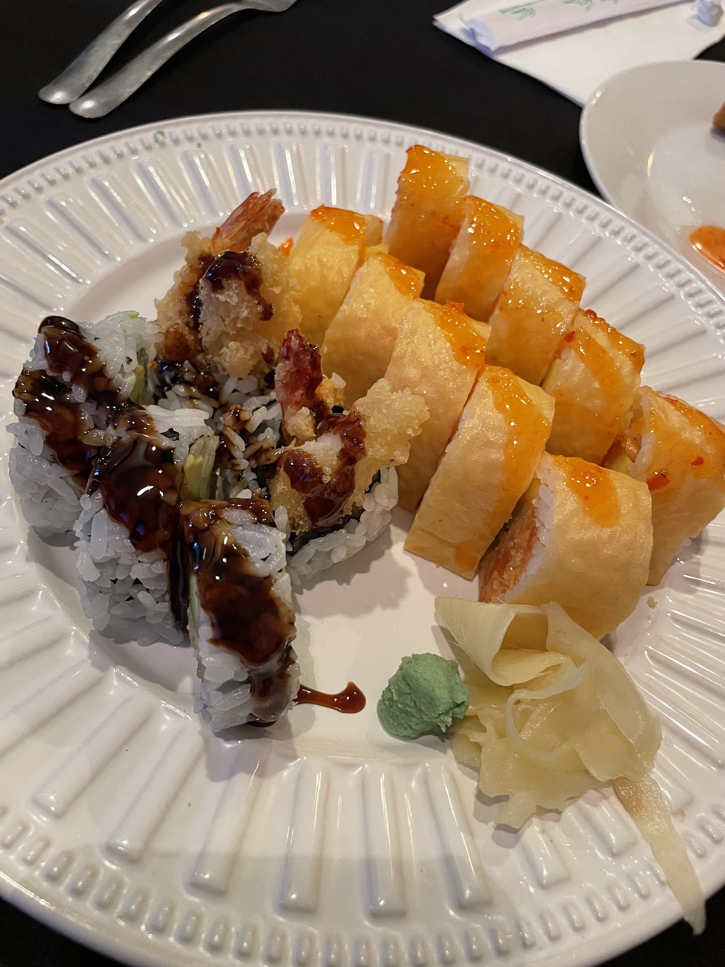 Came by on a Saturday night around 8pm with my family. There was literally one other table being occupied in the building and good, because seating is limited. We ordered the calamari, the golden mango roll, the shrimp tempura roll, chicken pad Thai and chicken and steak hibachi. My partner ordered the hibachi and was given a small side salad w ginger dressing, a bowl of room temperature miso soup and then two rangoons and a spring roll with it. The sushi was good. My pad Thai was good, a little on the sweet side though, not a bad flavor though, would have loved to have tasted some more spices and flavors in it. Partner said his Hibachi meal could have been bigger. Overall, I’d rate them a 3.5 because while it wasn’t a bad experience, there’s still some room for improvement. The waitress was very sweet, prices were good but I kept having to get up and ask other employees for stuff because for us to be one of two tables in the building, we didn’t really see her much. Also, when I finally got a refill of my sweet tea, I took a huge gulp of loose tea grounds. I brought it up with the grounds I spit in a napkin to let someone know and he just starred at me as if there was nothing else that could be done. I wanted tea but I just asked for a water instead. Not sure how this place got almost a 5 star rating, they must have a very loyal customer base or something. I did, however, enjoy their hot sake. It was only like $8 and I got at least 7 shots out of it before...