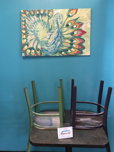 I enjoy the physical environment which has blue walls reminiscent of the Mediterranean and primitive artwork displayed on the walls, which is the handiwork of the owner. During the summer, the concrete floors and blue walls make it a nice reprieve from the heat outside, and reminiscent of a trip to the Mediterranean. However, due to the concrete floors in large glass windows, it can get a bit chilly in the winter time, so dress accordingly.