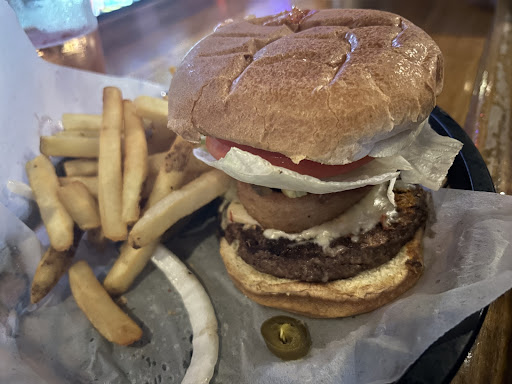 We had only been here once before for a friend's birthday party but we seemed to like it and planned on coming back. We finally did and were not disappointed. I started with a tall Labatt Blue and the Mrs had a Malibu rum and pineapple. Regretfully I hadn't gotten pictures of our lunches that day but my wife and I both really enjoyed it. In fact she said her hamburger was possibly her new favorite thing, along with the curly fries. She had a simple cheeseburger with the fixin's but it looked to be the definition of a GOOD bar burger (tasted good too, I only had a bite). Myself, I had their version of a Slim Jim and regular fries and really liked both; would definitely get it again provided I don't get hooked on the hamburgers! They do carryout also and we don't live far, so for sure we'll be back either way.