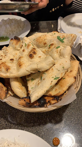 Naan - delicious, puffy, tandoor bread. Available with butter or butter/garlic. So good, you could make a meal of it alone.