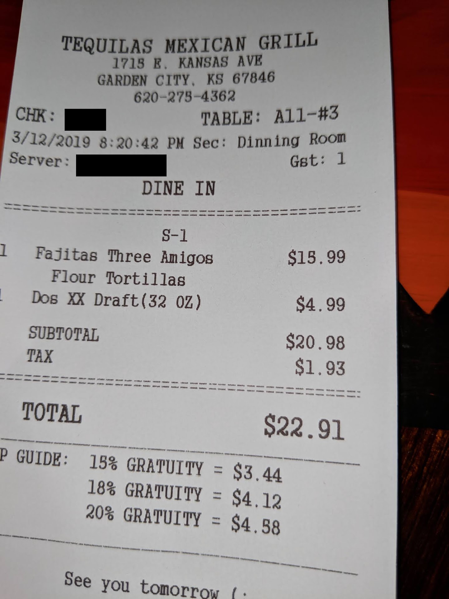 I am frequent traveler and a mexican food lover came here for the first time. What strikes me the most is that unlike a regular restaurant that has hostess at the front to take you in, this restaurant has an empty lectern with some notebook and a pack of menus. I came in and stopped within 2 feet of this lectern and stood there patiently. I saw a few waitresses going between the bar and tables. After about 5 minutes a female approached the lectern, looking down to her notebook, with zero recognition and no eye contact with me, she checks something in her notes and leaves. Ok, I thought, this is weird, someone has a bad day. So, I stand there in front of the lectern for another good 7-8 minutes. By the way, there were many empty tables on Sunday evening. Another male guy approached the lectern, zero eye contact no recognition of me standing there, he grabbed a menu and left to a table with that. I stand there patiently still, for one reason that I am hungry, and another reason, I love Mexican food. Now, the revelation came hard to my consciousness, when for the third time, another tanned female came to the lectern and ignored me. I quickly looked around, and the whole place was filled with Spanish speaking people. And even though I am of eastern European decent, I felt immediately that I am not welcomed here, not even at the lowest bounds of decency, with something that resembles a smile after 20 minutes of ignorance. Ok, I thought, I am not a royal prince after all, and went to use their restroom since I was on foot with long walk back to my hotel. After exiting the bathroom, I saw a gringo couple sitting at the bar where English looking bar lady mixed some drinks. I went to try and see if I can eat there using bar stool. The bar lady offered menu and had no idea why no one greeted me at the front. The place did not have Pacifico on draft. And the shrimp/chicken fajita was just as average as in a food truck. This is the second time in my 24 years in the USA, I see the backlash of the azteks. First time, I was not given a beer in a Florida restaurant that was completely filled with all Spaniards, drinking beer in front of my eyes. I understood that as a protective strategy of their female popu6which was the majority in that club/restaurant. But here, in West Kansas, Anglo-Saxons dominate at least population wise. And I bet there is a lease on the building of these machos. I will check. Oh, and there was this annoying quartett of Mexican musicians who sang and played for one table out of key sedrenadas, or whatever. So, yea, it is what is. But interestingly, Spaniards outside of the US weren't as rude as this ones, dwelling on gringos land, and sucking up on its economic and...