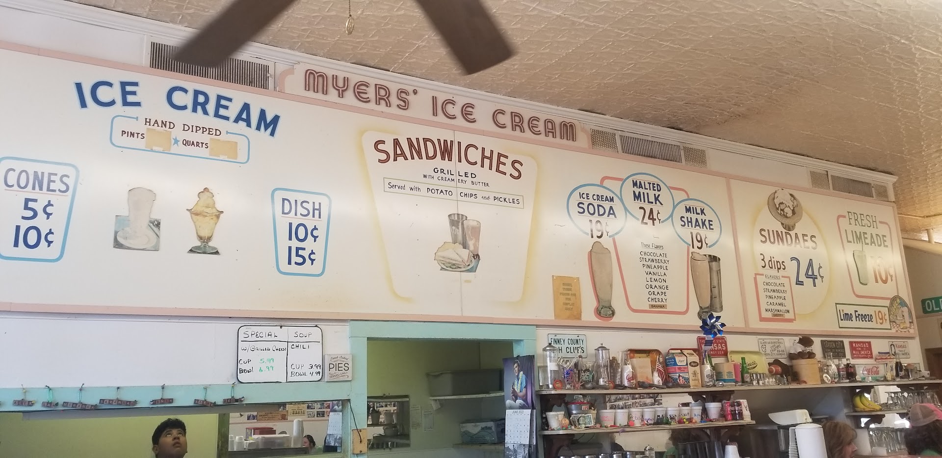 In the heart of garden city, Kansas nestled between buildings is a vintage restaurant from 1925. Although in this time era, it was owned by Myers ice cream and has had several owners since the original opening. The interior has maintained much of its original structure. In 1943 the restaurant opened for lunch and dinner and still maintaining its 50s vibe.