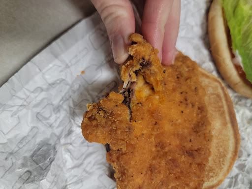 Read moreCame into this place after having a terrible experience at red Robin on Eagle, where we didn't get to eat our food. Just wanted something quick because I had surgery early in the morning. First thing that happens, we get charged 9.41 for a single chicken sandwich. It ended up being just over 6 dollars. My man gave her a 20 dollar bill, and she says "we don't have any ones". Right off the bat she had this terrible negative affect and after our previous experience, it was so disappointing. So then we ordered a small frosty because we had just paid 3 dollars that day at state street for a Keychain that says we get one. She tells us sorry but that's an old one. I tell her that I just paid for it today from another store. She proceeds to start arguing with me about this junior frosty. Finally my boyfriend speaks up and very nicely tells her that he doesn't appreciate her very negative attitude, and all she could say was that she wasn't being rude, it's just how she is. Offered nothing in that regard, tells us reluctantly which is Anisa, though I don't know how to spell it. We tell her to have a goodnight and she shuts the door in our faces. So then I just get home and the chicken sandwich clearly has meat that has been sitting in a pan for far too long. I'm posting pictures of the way it looks. I'm very disappointed and will never go here again. Which sucks because we liked...