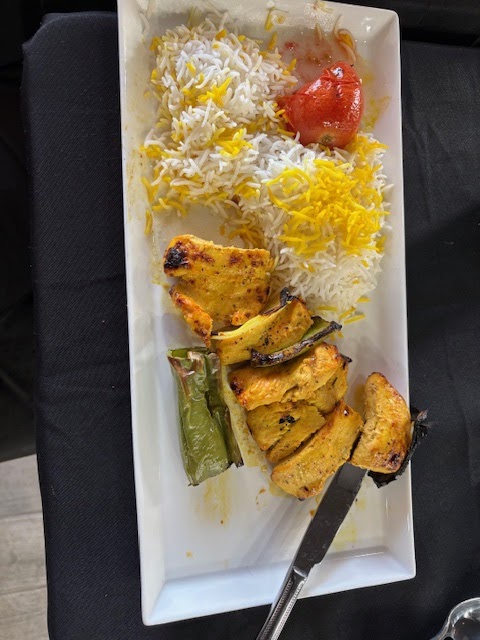 One thing that truly stood out was the hospitality of the owner, a wonderful Persian gentleman. His professionalism and welcoming nature enhanced my dining experience. I opted for a to-go order, and to my surprise, he graciously included not one, but three plates. There was the main plate with the beef kabob kobideh and pita bread, another with flavorful rice, and an additional plate as a courtesy with the most delectable Tahdig (Persian fried rice) and more grilled tomatoes. The quality and taste were exceptional, reminding me of the kabobs my dad makes at home. It felt like a homemade culinary experience.