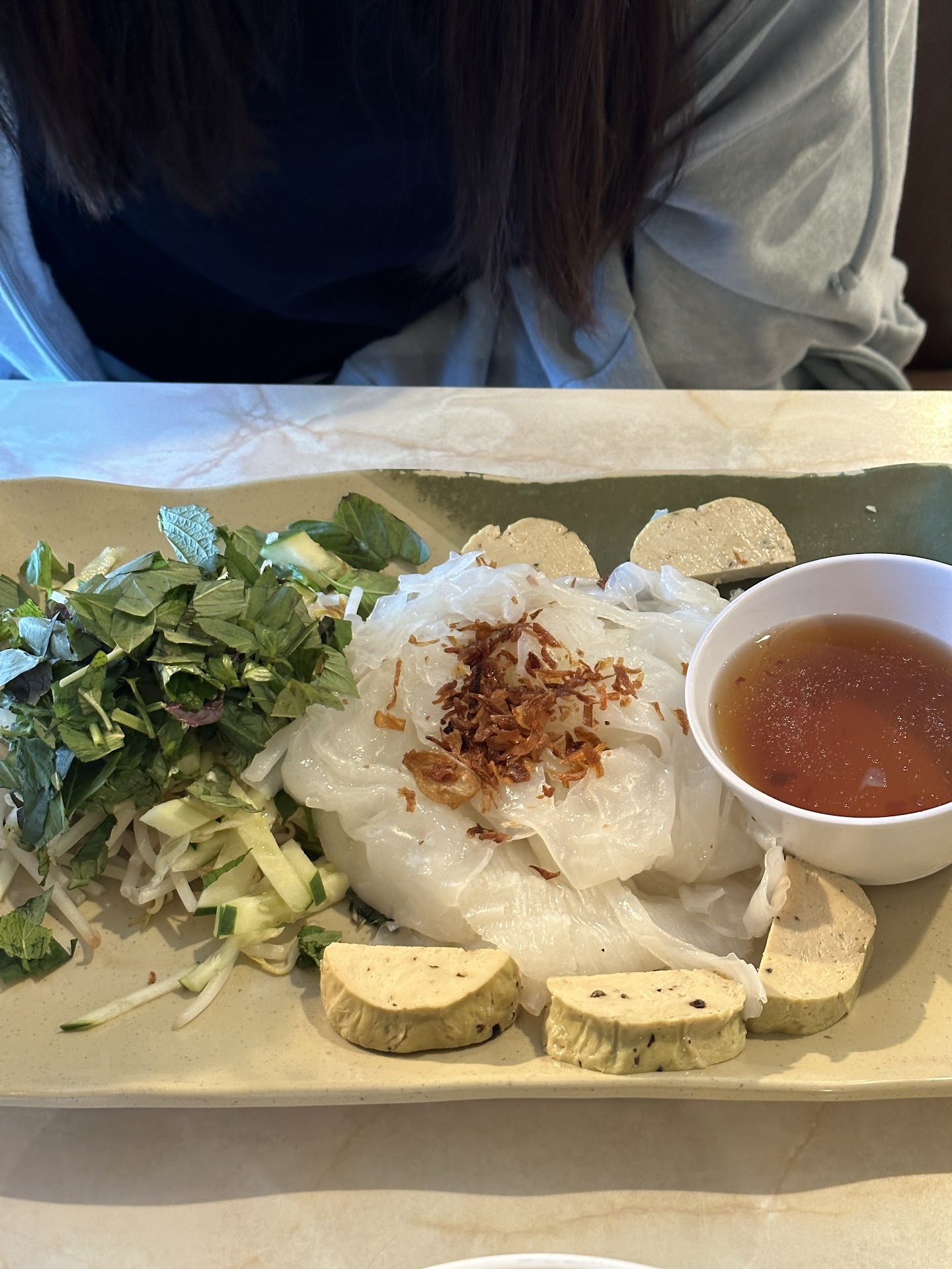It was my first time trying vegetarian Vietnamese food. I was hesitant and not sure what to think. I got number 19 i believe, bird net. I call in my order, the guy to answer my was nice. When i got there, the employees were super friendly and talkative. They make me feel welcome ( I was stand off-ish). The girl at register ask if i been there before, what other vietnamese places i been to, if wanted a cup of water. I was very happy with my experience. OMG it was time to eat! Just looking at it was unsure what to think, but once I try it. I was sold!! It was sssssoooo good!!!! Rich in flavor. Everything compliment each other. I cant wait to go back.👏👏👏👏 ooo last thing, ice coffee...
