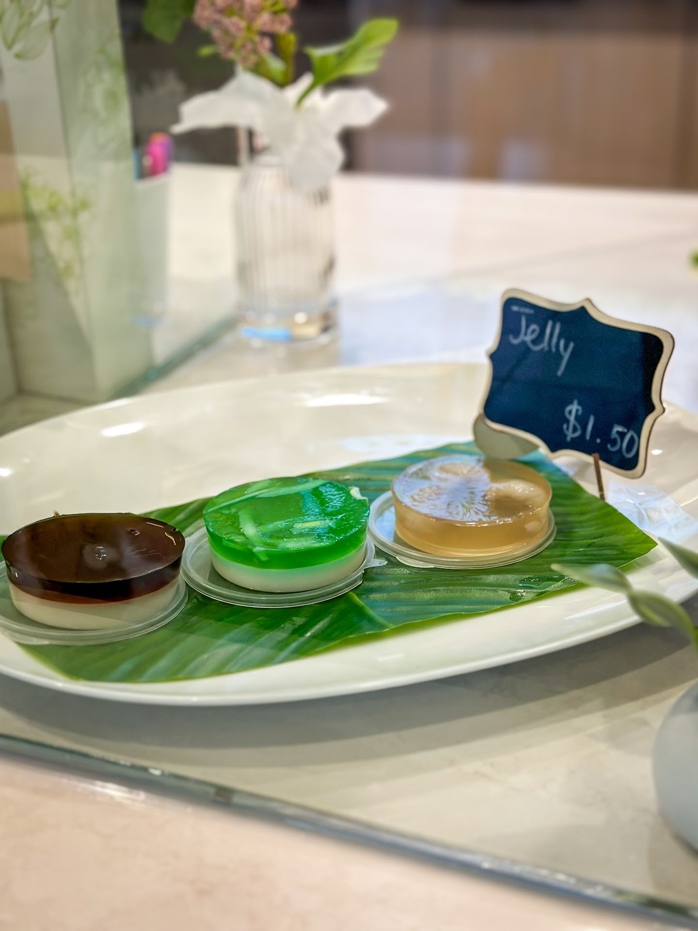 We ordered 4 drinks with no ice. They gave us a bag of ice on the side. This is great if you’re going to consume it later so it doesn’t melt and dilute. We also got palm sugar and pandan coconut jelly.