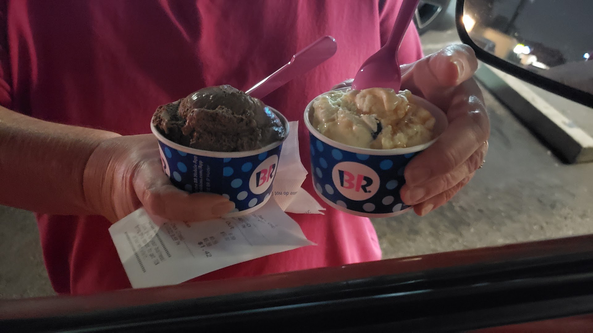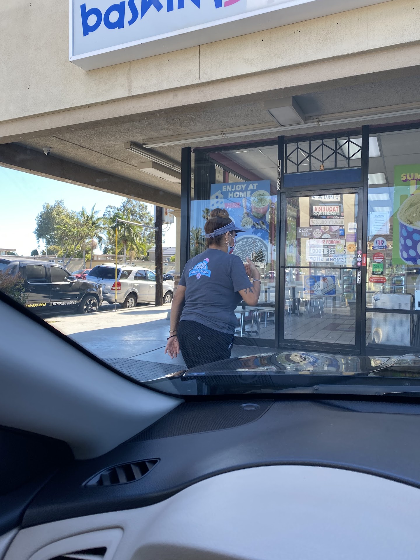 Brought my kids here while on Christmas holiday to Anaheim. It was about 45 min until closing, yet the front doors were locked. One of the 2 girls working eventually came to a side door and let us in, no apology or explanation. I wish I had left right then. The girls were indifferent towards us and any questions we asked (how many toppings on the brownie sundae, etc), audibly sighing/rolling eyes upon the realization that all 3 of us wanted diff things, even asking me if I was "totally sure" my son wanted the brownie sundae, my daughter a cone and a cup container for myself...? Yep, totally sure! 3 guys walk in a min later and it's clear right away they are the girl's boyfriend's or something, calling each other Bae, talking about plans to party later and 2 of them repeatedly running behind the counter to slap the girls on their butts.. At this point we are completely forgotten as they abandon anything to do with our order to start making the guys' milkshake, banana split and sundae. After a min I patiently remind the girls we're still here and need to go please. Reluctantly one finishes our order, but only after flinging hot caramel all over my 9 yr old's hand and sleeve with no apology or offer of napkins (none in any of the dispensers, I had wipes in my purse), filling my quart barely over 3/4 of the way full, and refusing to take a coupon for my son's sundae. All this while giggling and charging the guys each just the price of a waffle cone. I just wanted to get out of there as fast as possible. Looking at the receipt on the way back to our hotel, my son notices we're charged $2.79 for a $.79 topping and $1.99 for $.99 cone! Not to mention his (expensive!) brownie sundae had 2 tiny rock-hard brownie bits in it-- nothing like the pic! Sure glad I was charged an extra BS $3 to help pay for their bf's orders, all while being ripped off on our own! Another BR's is 10 min...