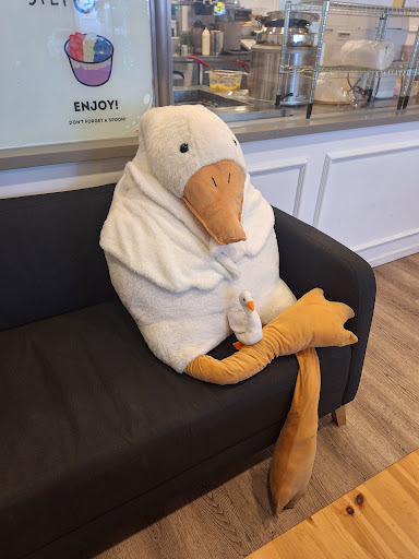 This is a cute little Boba Cafe decorated with duckies everywhere! There's also a Goose you can hang out with on a couch!