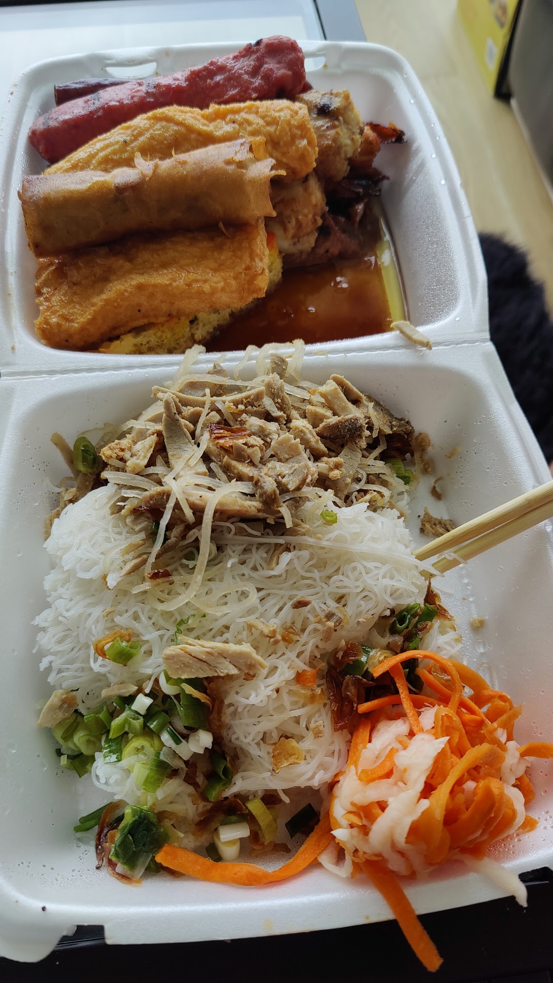 Read moreThe food was fine, but customer service wasn't good. Me and my family came at 9 am on Wednesday. It wasn't busy. Tables were unoccupied and and it seemed like we were the first customers of the day. The waiter sat from a distance and only came when we waved at him. Because it was early, my mom wondered if we had to wait a bit for the food. She asked the waiter politely, but he answered as if it was an annoying question. He said it depended on what the order was. Since the reviews said the serving portions were big, I ordered 2 plates of broken rice for 3 people. He replied, "So only two?". We spoke Vietnamese so I understood his attitude. After getting the menu brochures back, he threw them at another table rudely. The food was ready in a few minutes. Overall, it wasn't bad, but wasn't very good either. Quality was just average. The "chạo tôm", egg cake shrimp sausage, tasted more like shrimp/fish balls. That morning was my first visit there, but I don't think we...