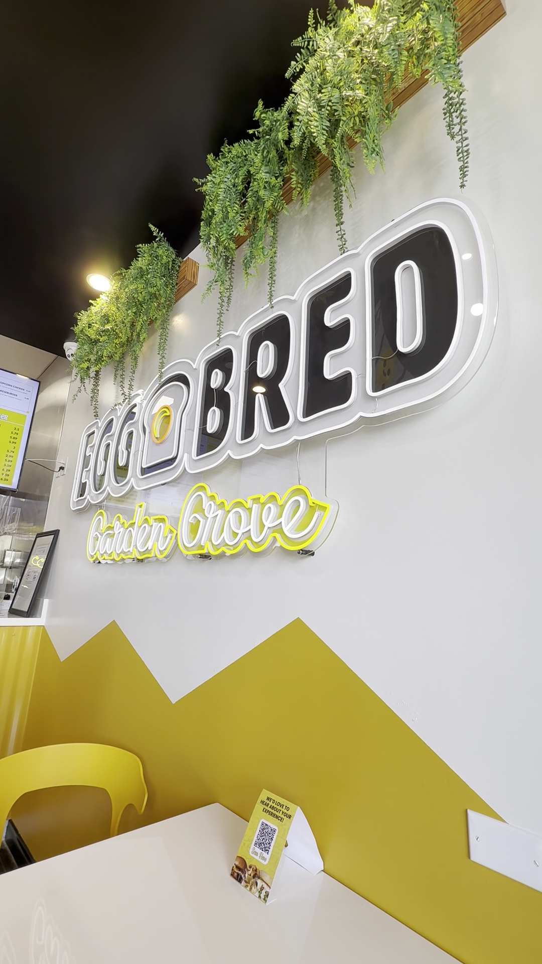 The business is located in the Sprouts market shopping plaza. There were plenty of parking spaces, and Eggbread had a nice outdoor patio area. Indoor was roomy with high ceiling, and the deco was very pleasant with fun wall graffiti perfect for photo zone.